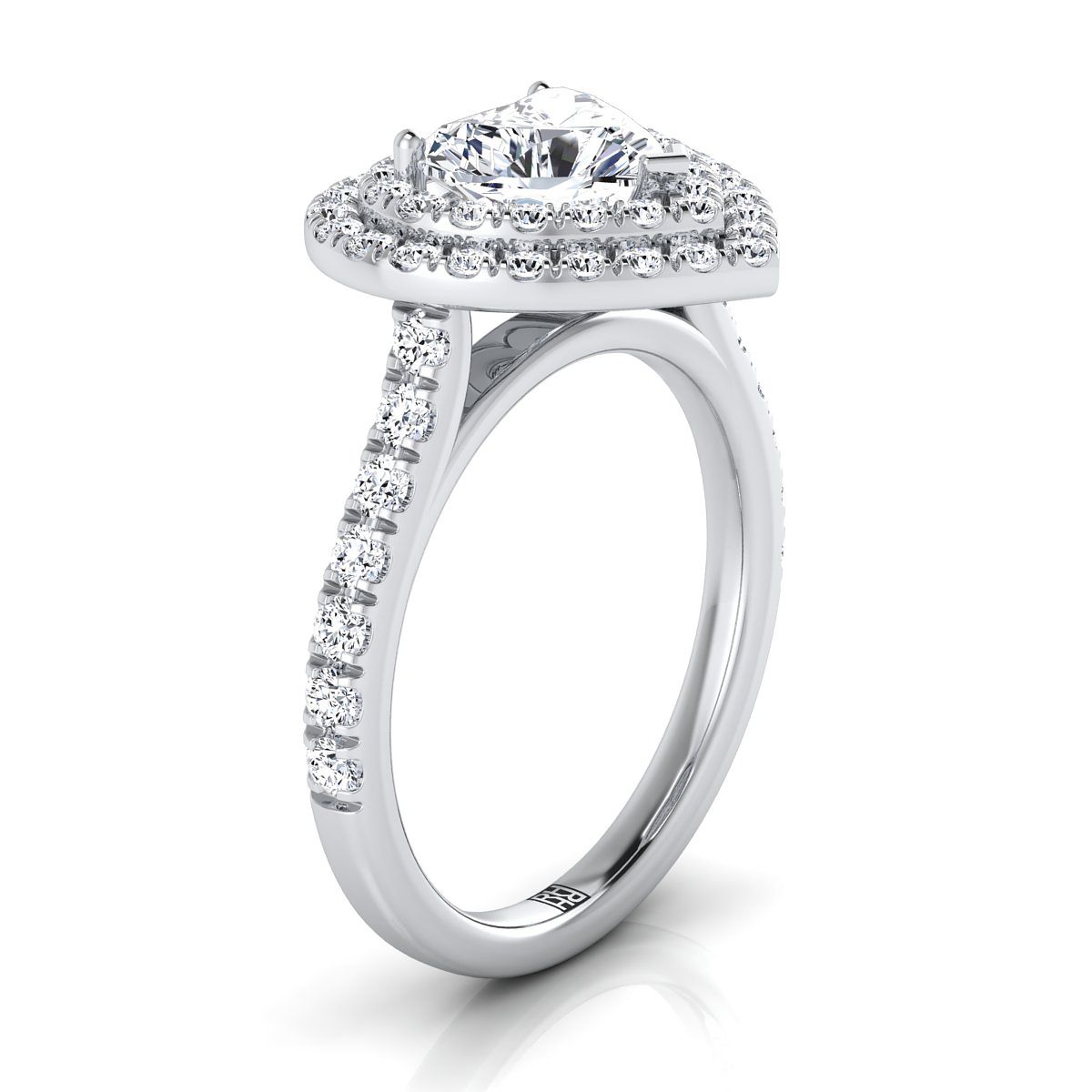 Exquisitely Handcrafted, This Double Pave Heart Shape Halo Engagement Ring Showcases Brilliant Cut Diamonds (h-i/vs 0.80 Ctw) Beautifully Pave Set In A Classic 18k White Gold Setting.