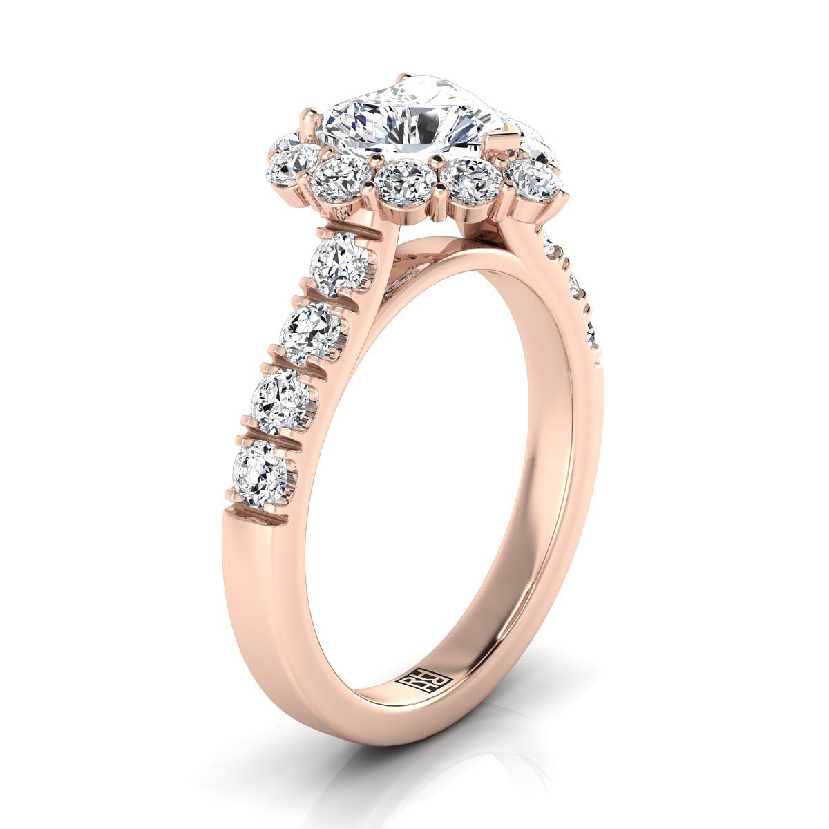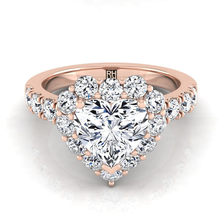 14K Rose Gold Heart Shape Center Diamond Luxe Style French Pave Halo Engagement Ring -1-1/10ctw