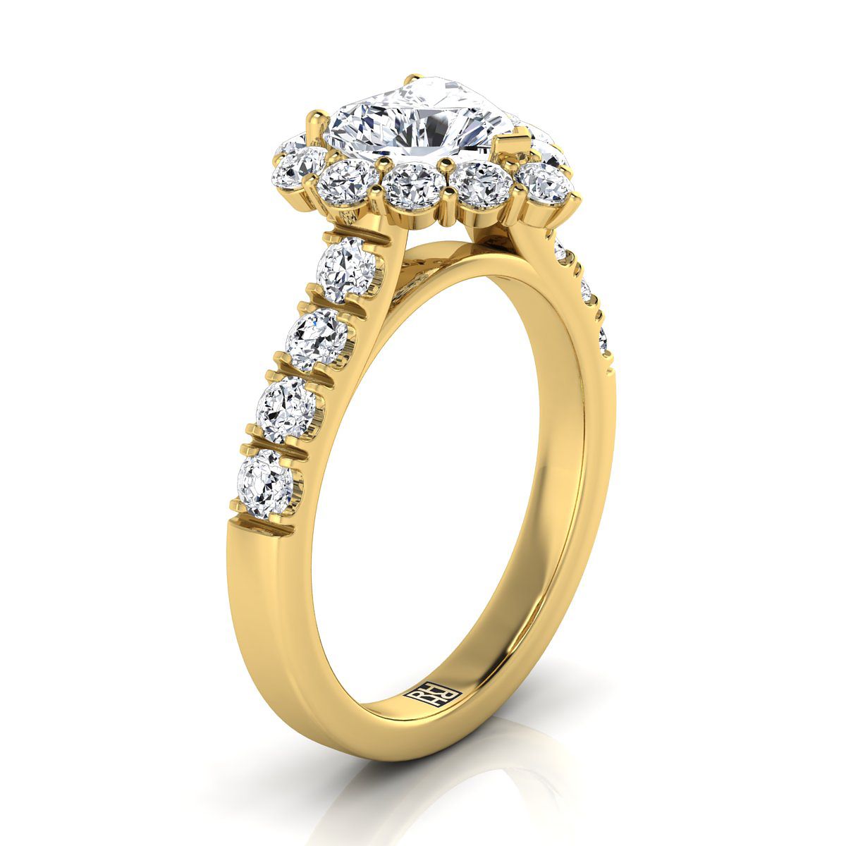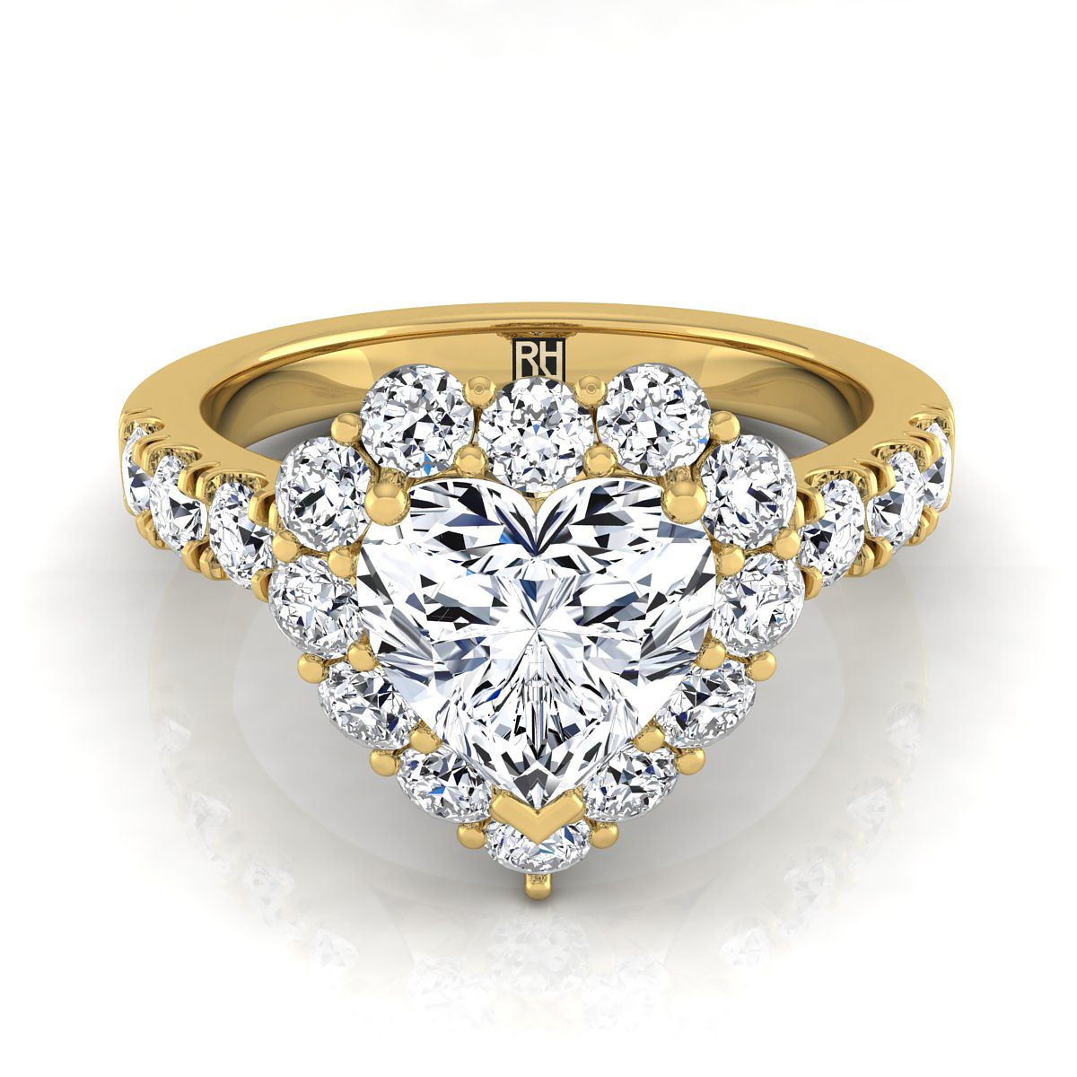 14K Yellow Gold Heart Shape Center Diamond Luxe Style French Pave Halo Engagement Ring -1-1/10ctw
