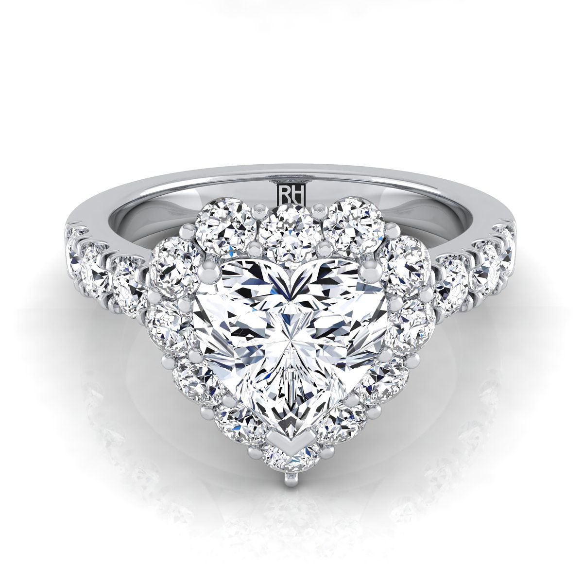 An Elegant Statement Of Style, This Heart Shape Halo Pave Engagement Ring Showcases Brilliant Cut Diamonds (h-i/vs 1.00ctw) Beautifully Pave Set In A Classic 18k White Gold Setting.