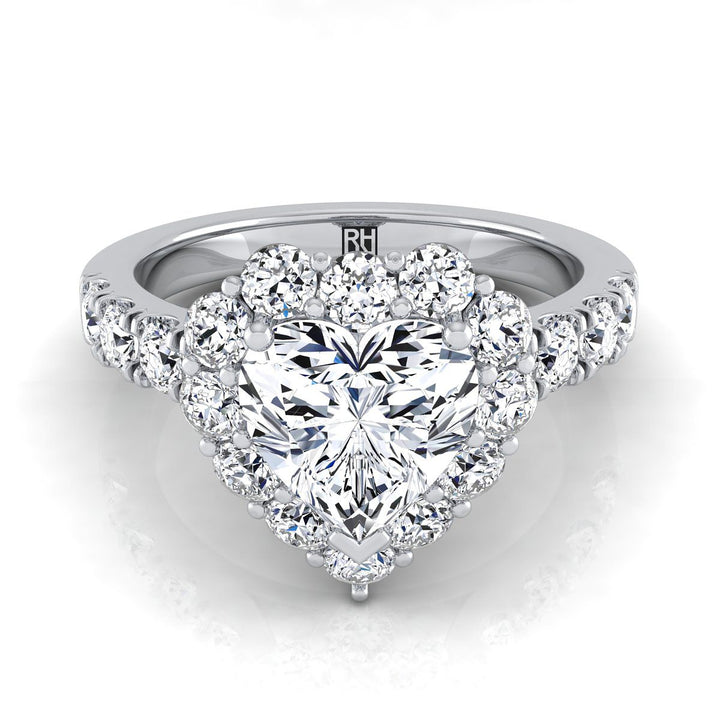 18K White Gold Heart Shape Center Diamond Luxe Style French Pave Halo Engagement Ring -1-1/10ctw