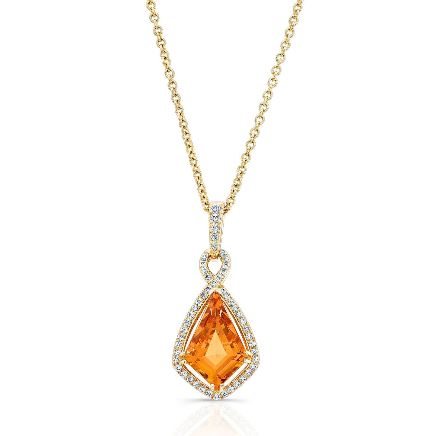 14karat Yellow Gold Pendant With 15x10mm (3.75ct) Kite Citrine And 50 Round Brilliant Diamonds 0.20carat Total Weight (h-i, Si1-si2)