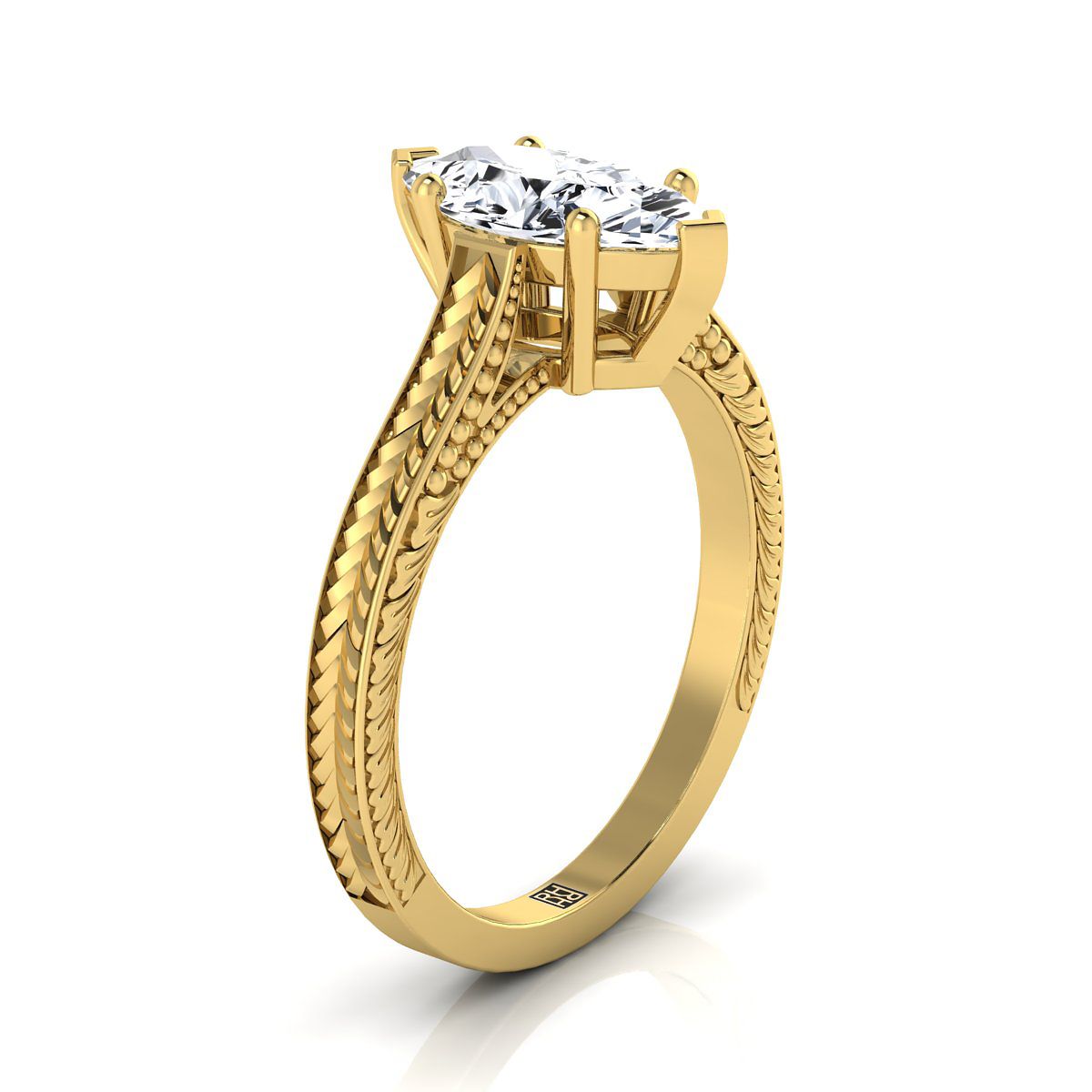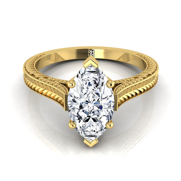 Understated Elegance, This Marquise Diamond Engagement Ring Showcases An Antique Inspired Engraved Design With A Classic Millgrain Finish In 14k Yellow Gold