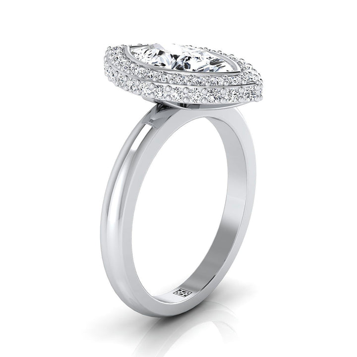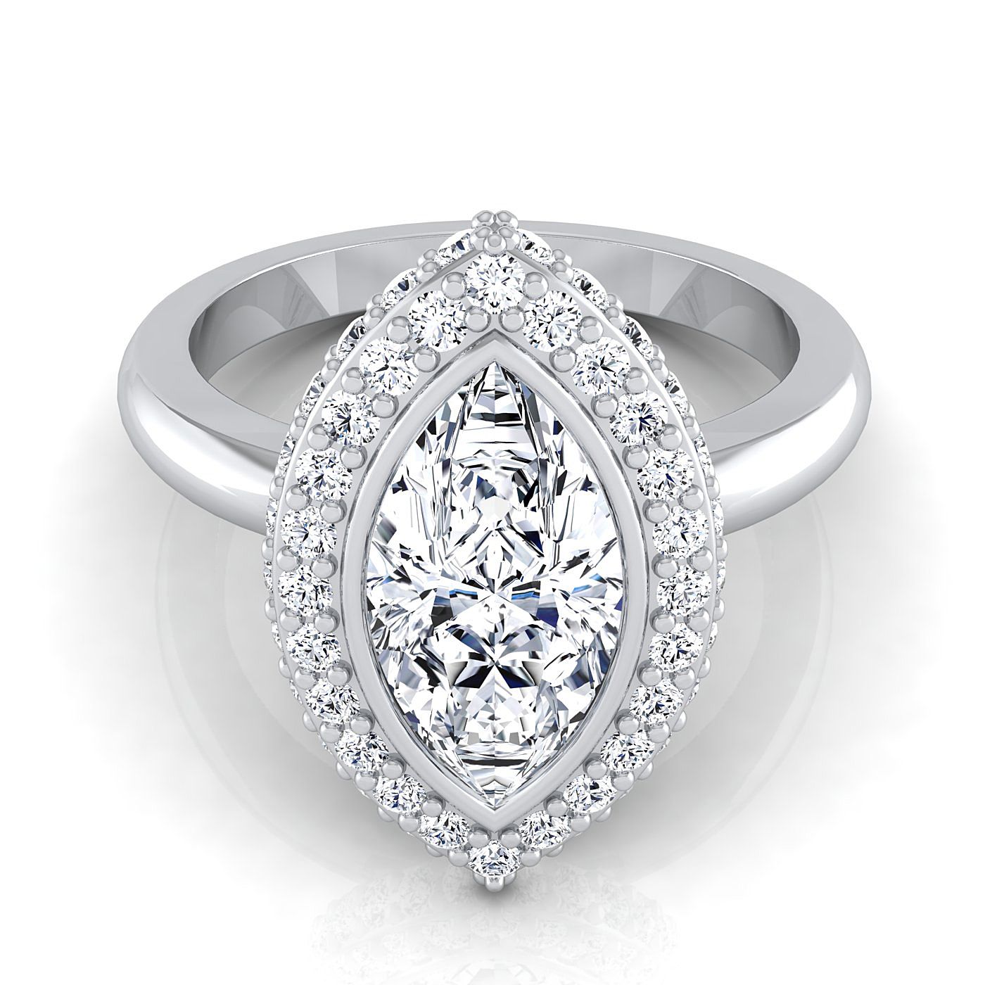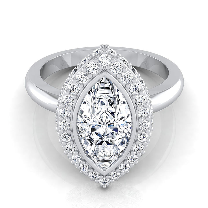 14K White Gold Marquise Bezel Pave 3D Halo Solitaire Engagement Ring