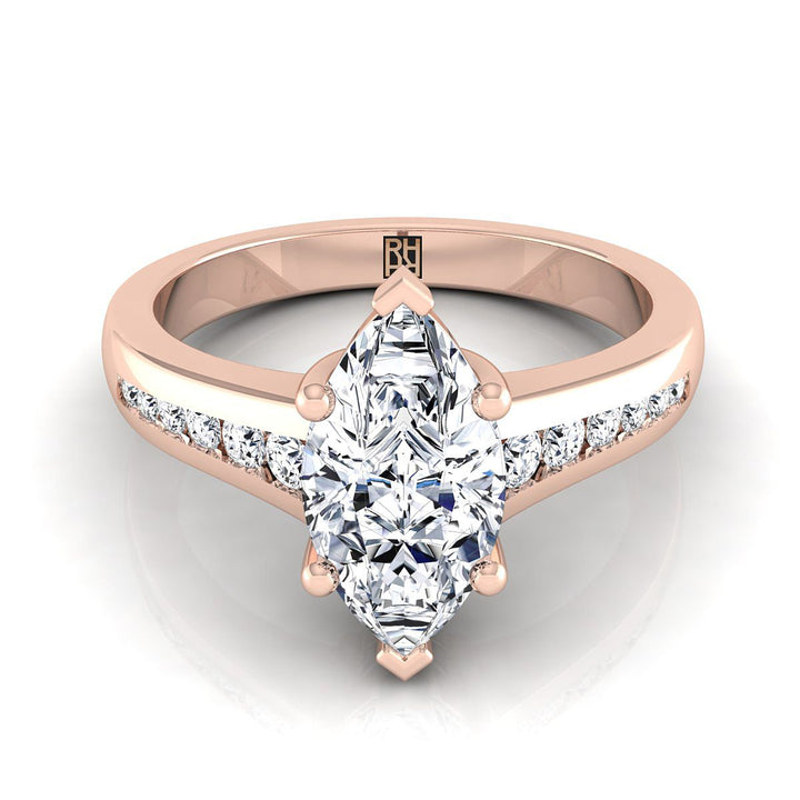 14K Rose Gold Marquise Contemporary Tapered Diamond Channel Engagement Ring -1/6ctw
