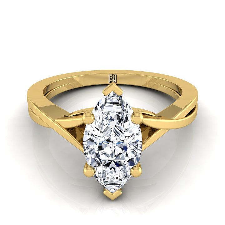 18K Yellow Gold Marquise Delicate Twist Solitaire Engagement Ring
