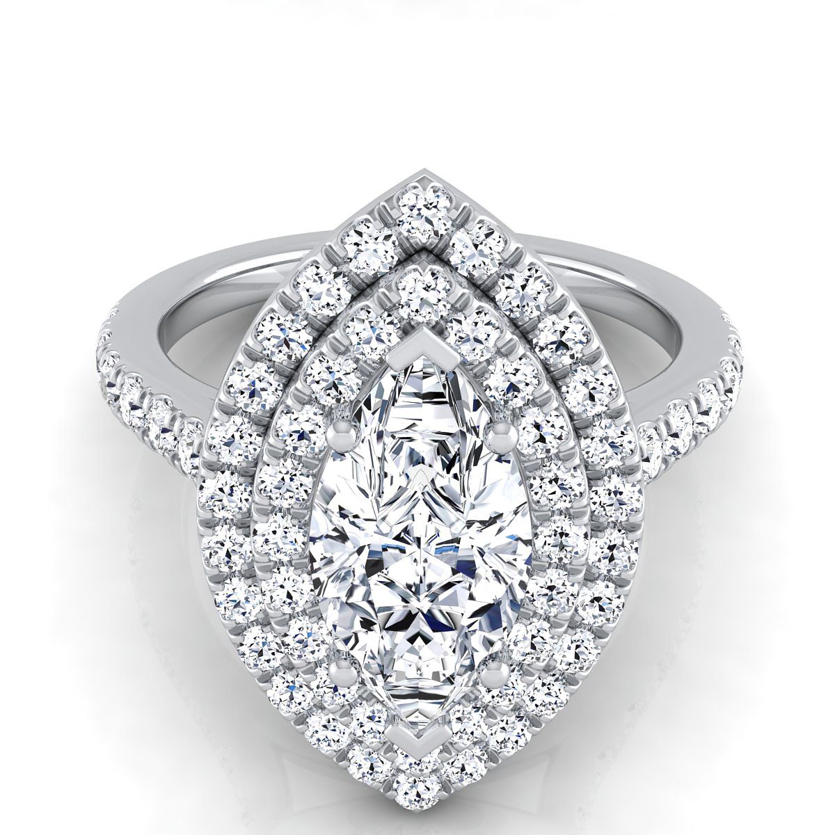 Exquisitely Handcrafted, This Double Pave Marquise Halo Engagement Ring Showcases Brilliant Cut Diamonds (h-i/vs 0.80 Ctw) Beautifully Pave Set In A Classic 14k White Gold Setting.