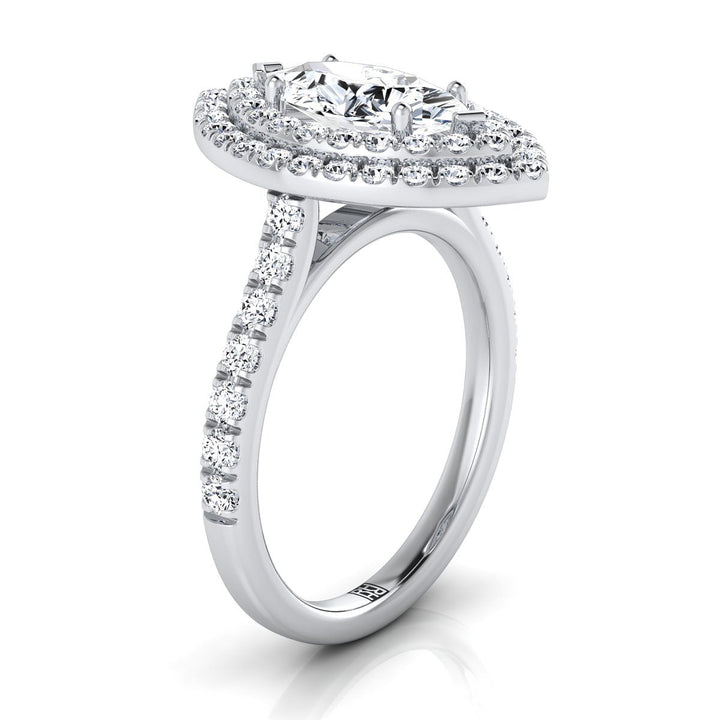14K White Gold Marquise Double Pave Halo with Linear Diamond Engagement Ring -7/8ctw