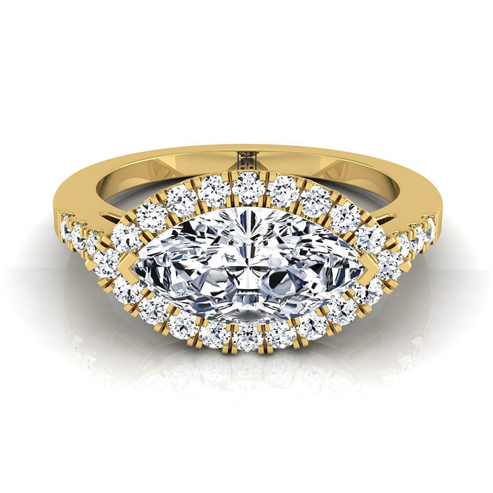 18K Yellow Gold Marquise Diamond Horizontal Fancy East West Halo Engagement Ring -1/3ctw