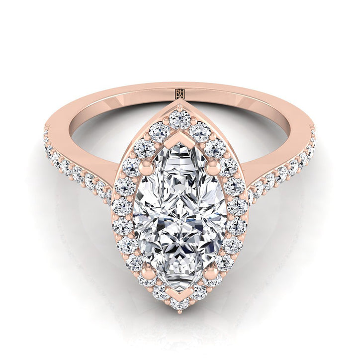 14K Rose Gold Marquise Classic French Pave Diamond Halo and Linear Engagement Ring -1/3ctw
