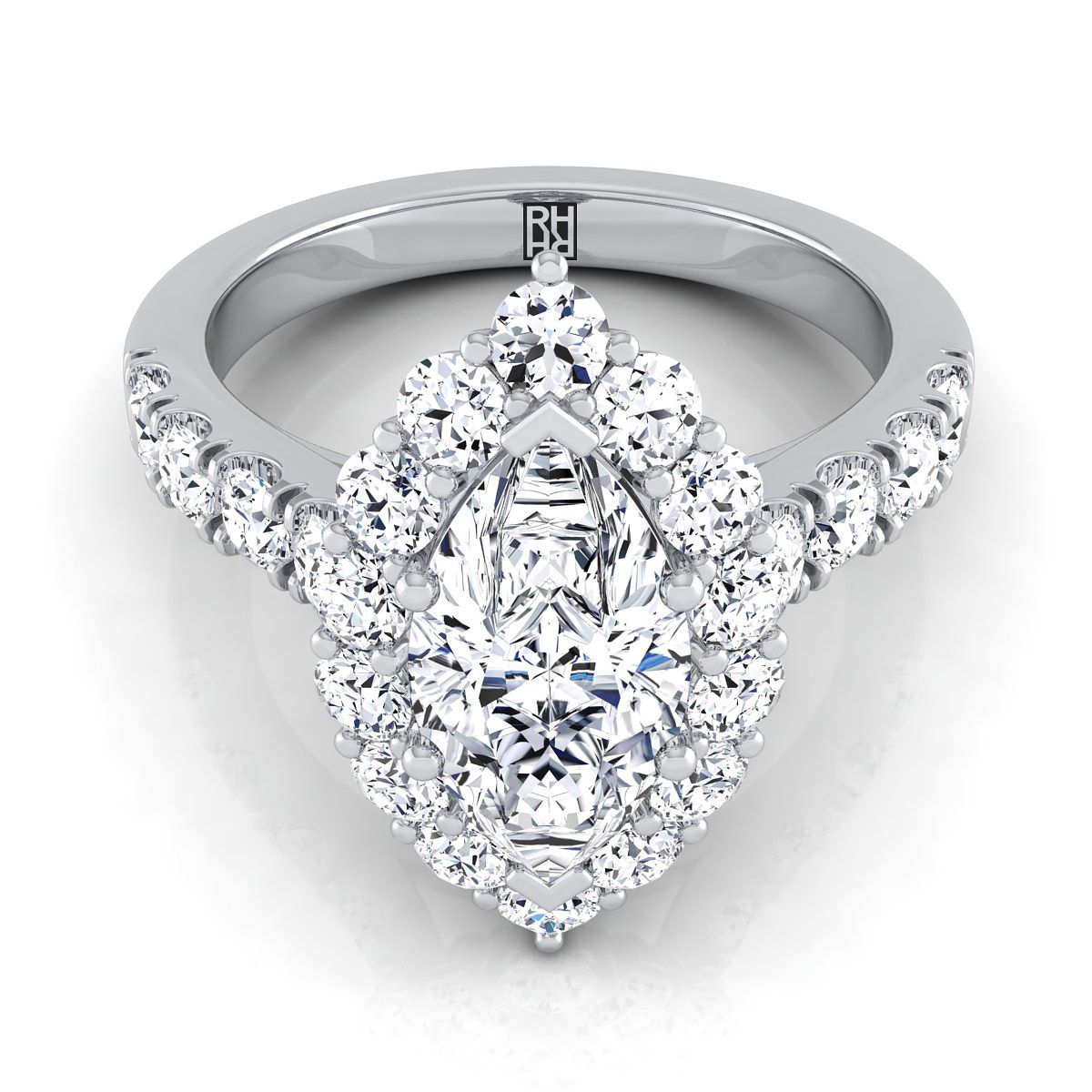 An Elegant Statement Of Style, This Marquise Halo Pave Engagement Ring Showcases Brilliant Cut Diamonds (h-i/vs 1.15ctw) Beautifully Pave Set In A Classic 18k White Gold Setting.
