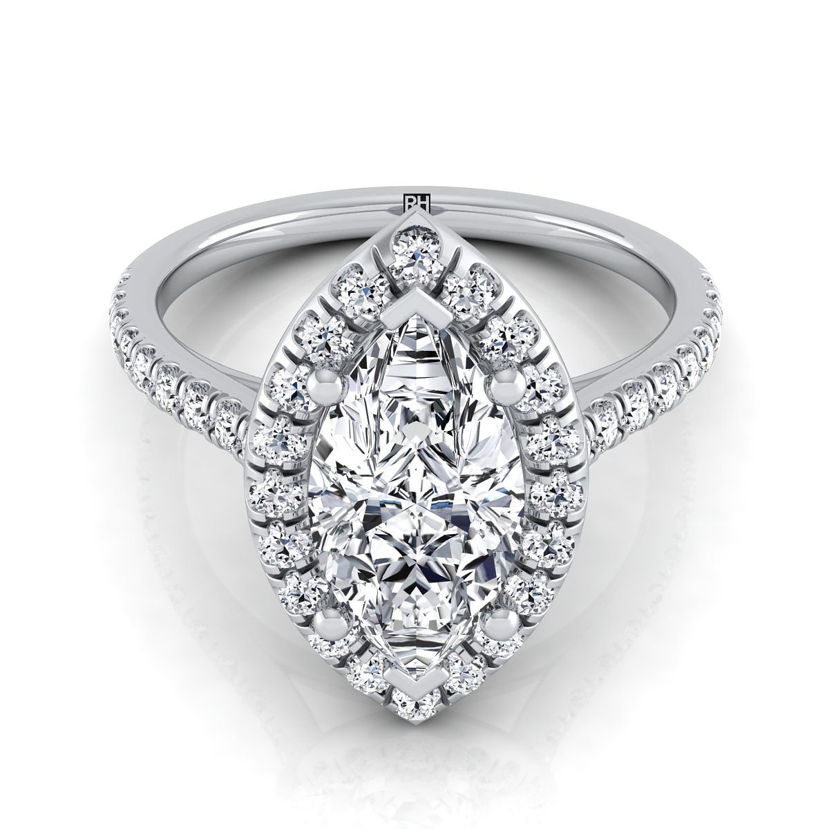 An Elegant Statement Of Style, This Marquise Halo Engagement Ring With Diamond Pave Shank Showcases Brilliant Cut Diamonds (h-i/vs 0.45ctw) Beautifully Set In A Classic 18k White Gold Setting.
