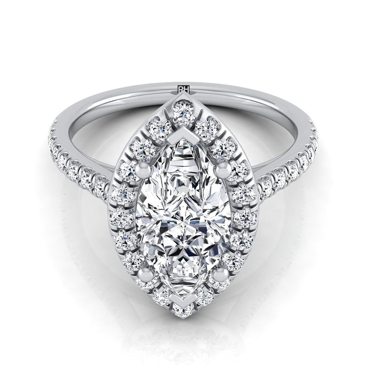18K White Gold Marquise Classic French Pave Halo and Linear Engagement Ring -1/2ctw