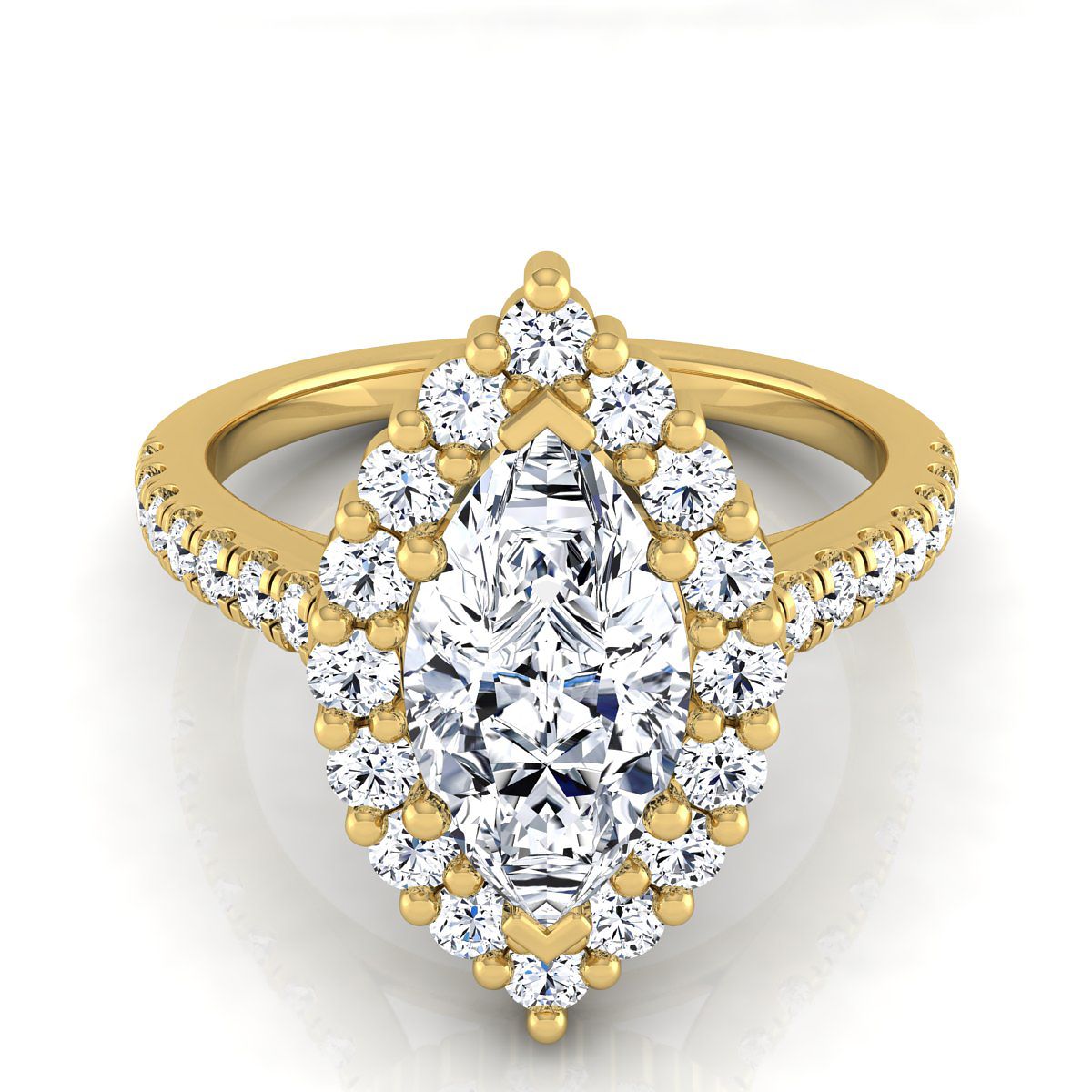 An Elegant Statement Of Style, This Marquise Halo Engagement Ring With Diamond Pave Shank Showcases Brilliant Cut Diamonds (h-i/vs 0.65ctw) Beautifully Set In A Classic 18k Yellow Gold Setting.