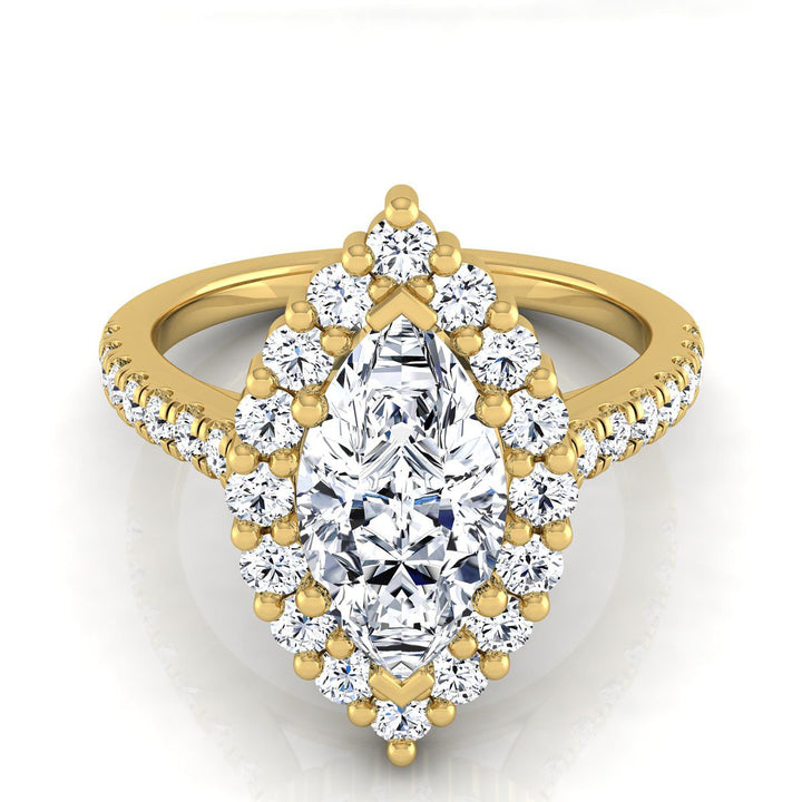18K Yellow Gold Marquise Diamond Shared Prong Halo Engagement Ring -5/8ctw
