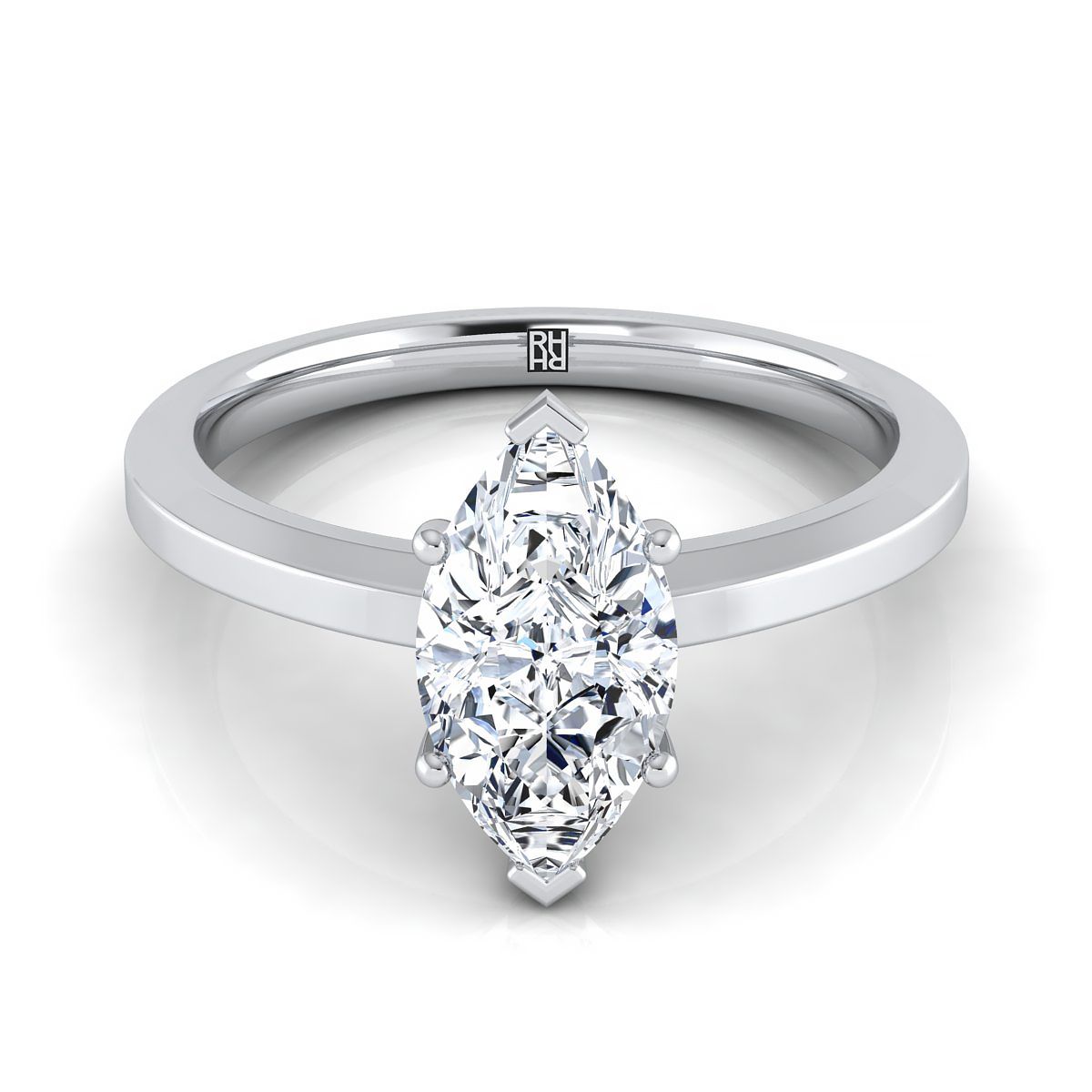 18K White Gold Marquise Beveled Edge Comfort Style Bright Finish Solitaire Engagement Ring