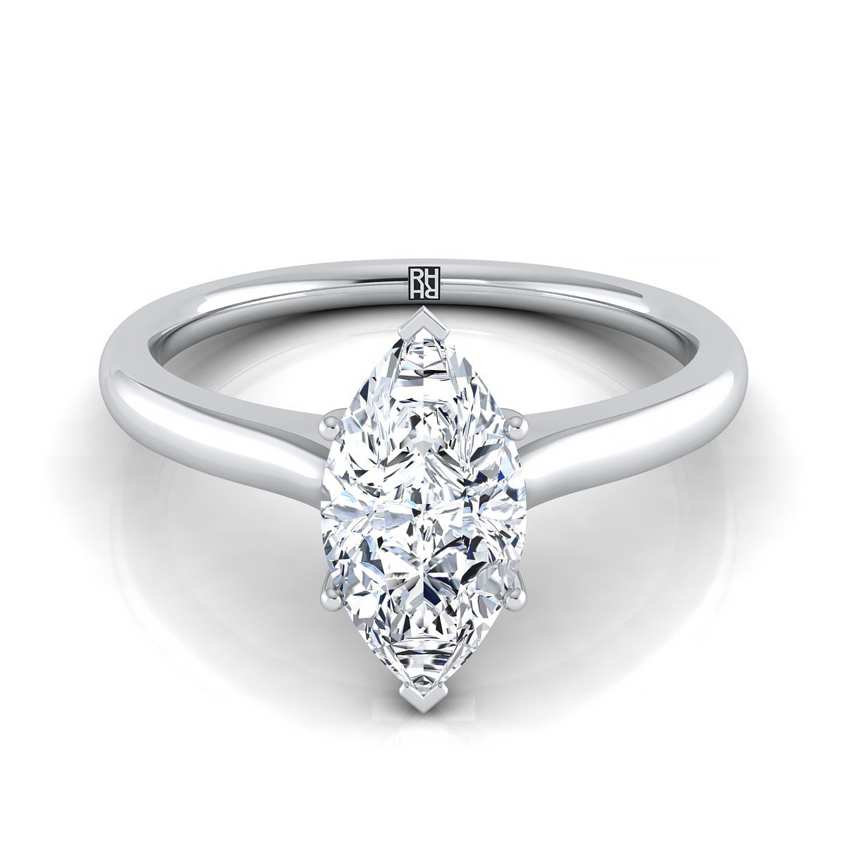 Understated Elegance, This Marquise Diamond Engagement Ring Showcases A Bezel Set Diamond Design Gallery With A Classic High Polish Finish In Platinum