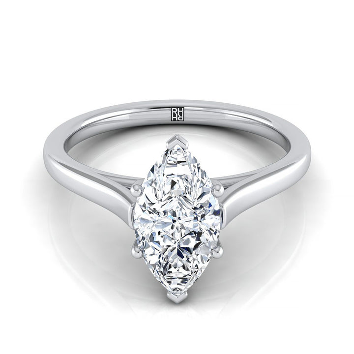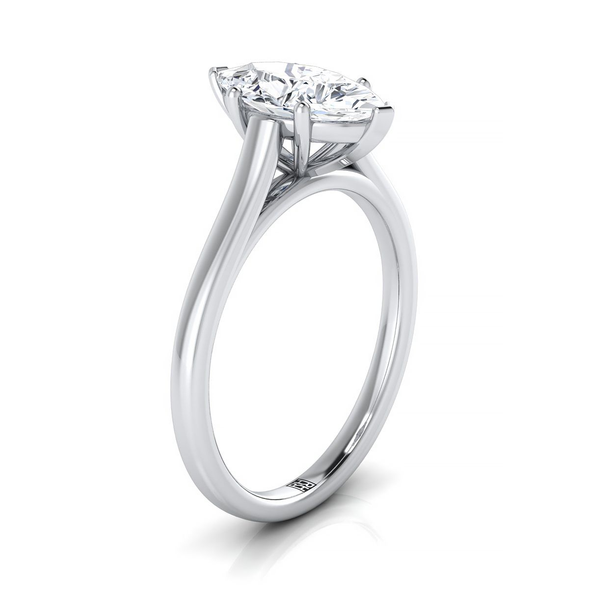 18K White Gold Marquise Elegant Cathedral Solitaire Engagement Ring