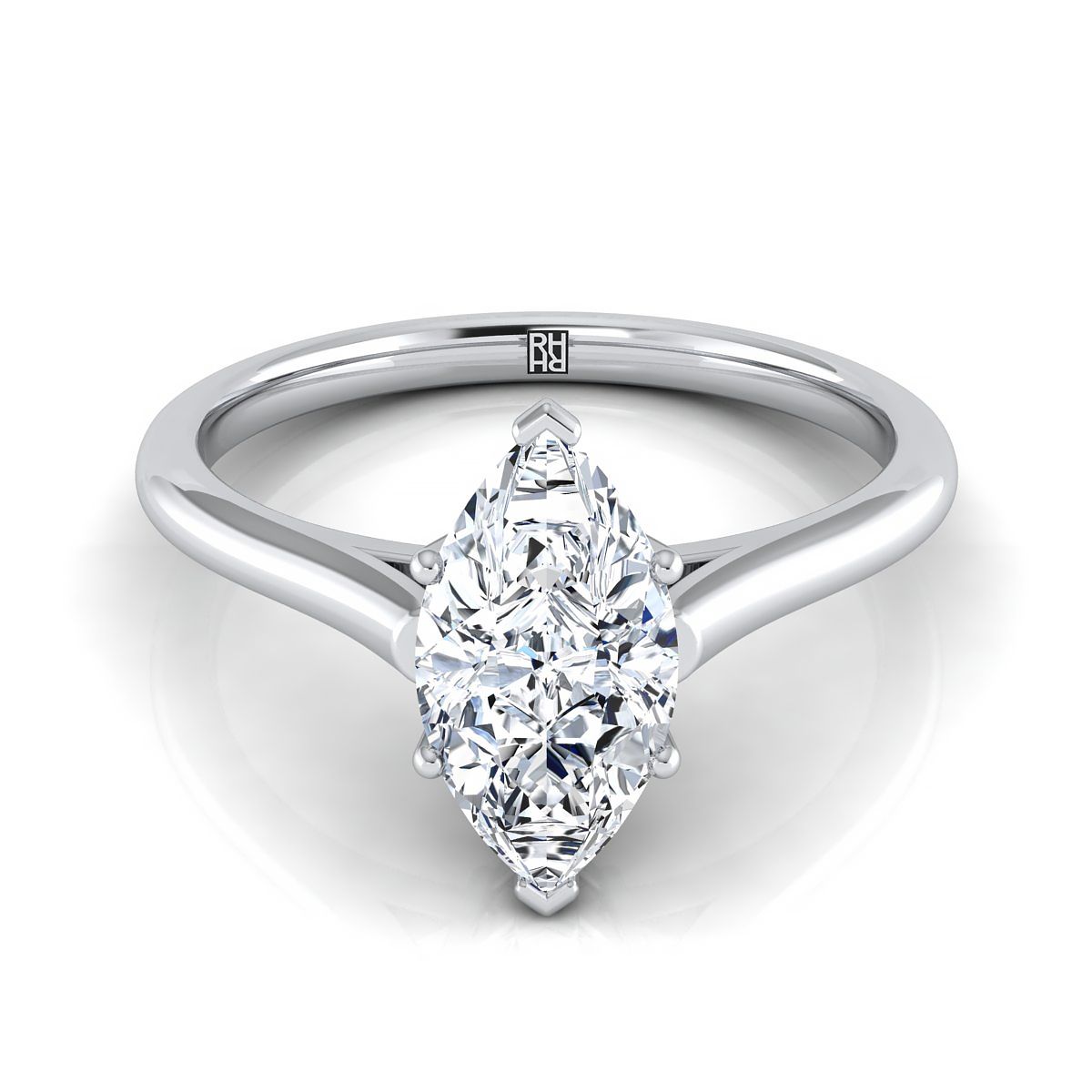 Platinum Marquise Cathedral Style Comfort Fit Solitaire Engagement Ring