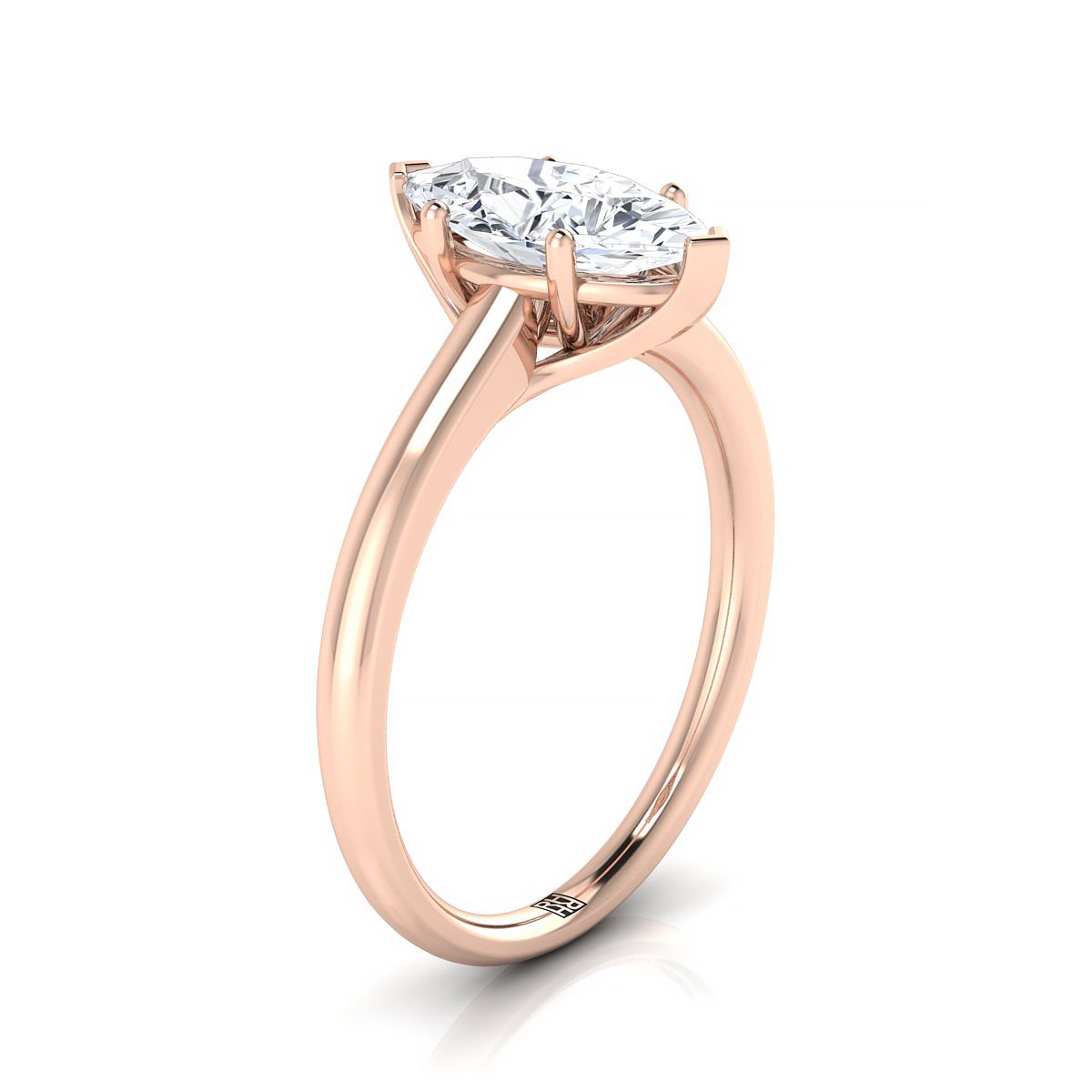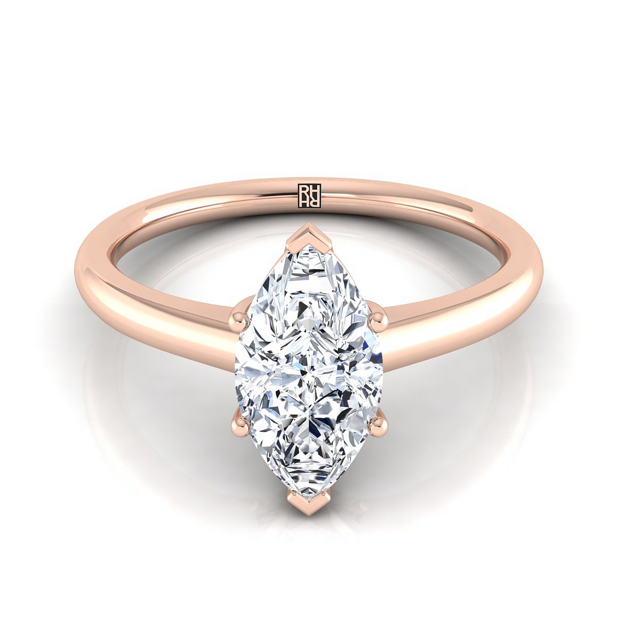 Elegant And Classic, This Marquise Diamond Solitaire Engagement Ring Showcases A Flat Shank In 14k Rose Gold.