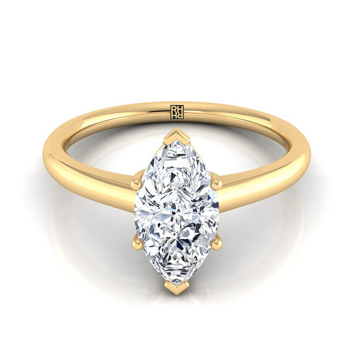 14K Yellow Gold Marquise Contemporary Comfort Fit Solitaire Engagement Ring