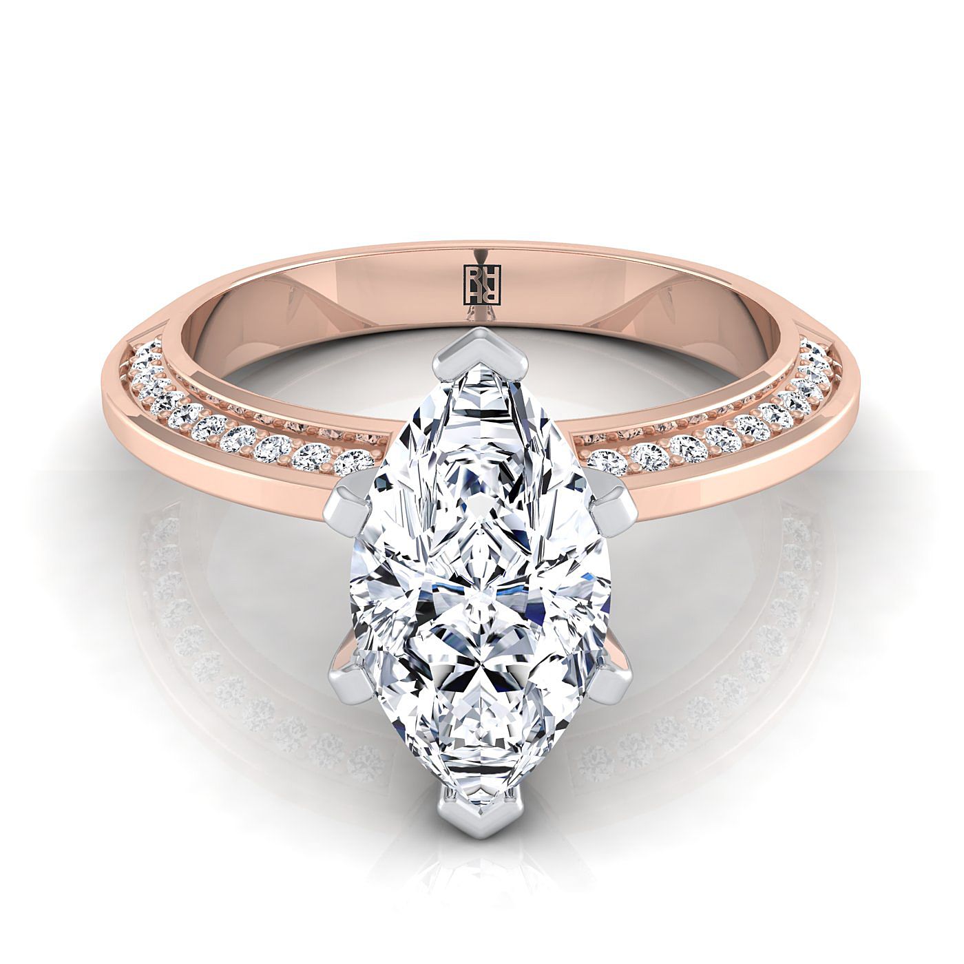 Classic Marquise Cut Center Diamond Engagement Ring With A Knife Edged Pave Gallery Showcasing Brilliant Cut Diamonds (h-i/vs 0.20ctw) Beautifully Set In An Elegant 14k Rose Gold Setting.