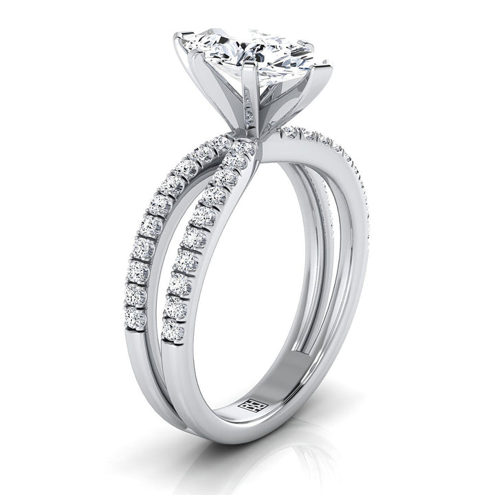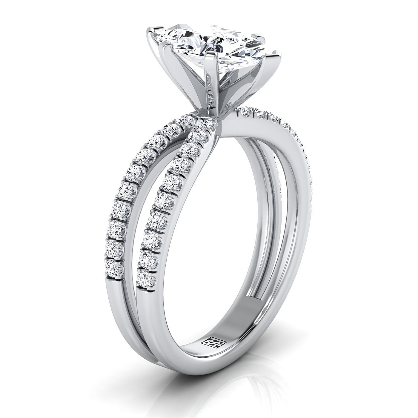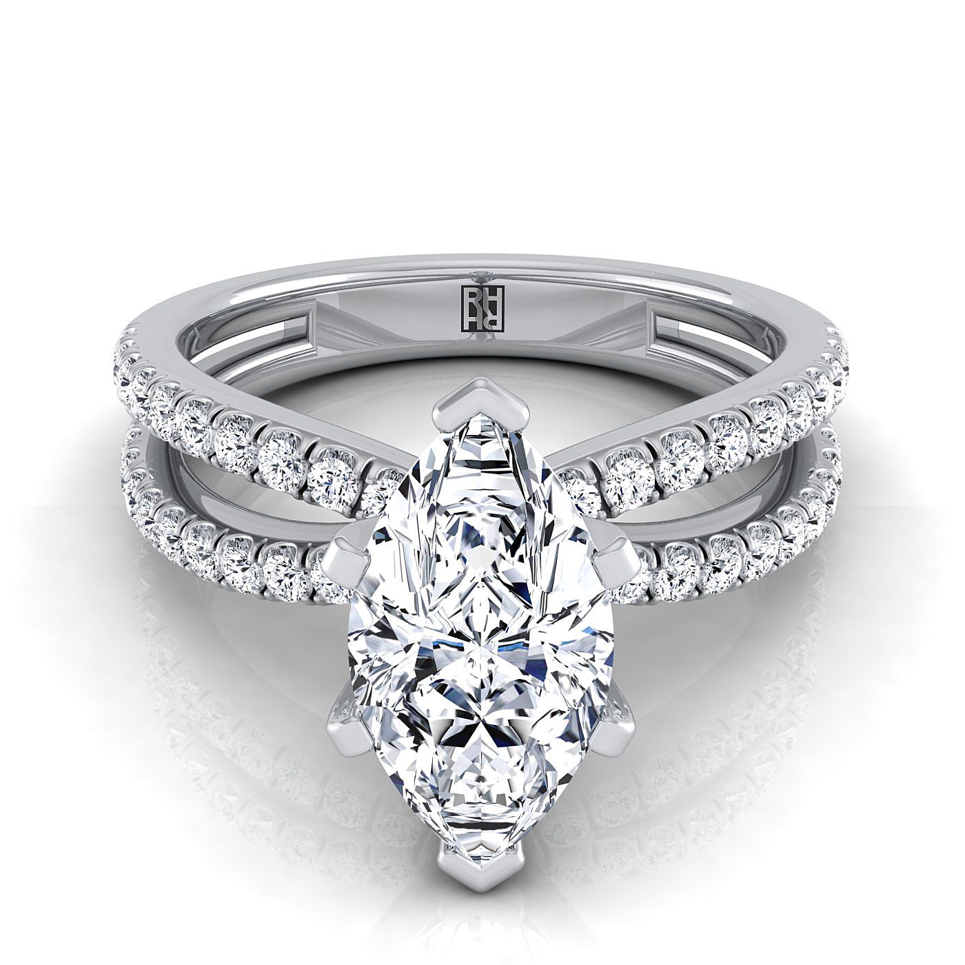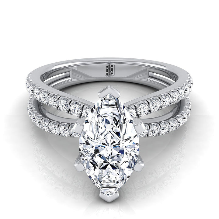 18K White Gold Marquise Diamond Two Row Pavé Split Shank Engagement Ring -1/3ctw
