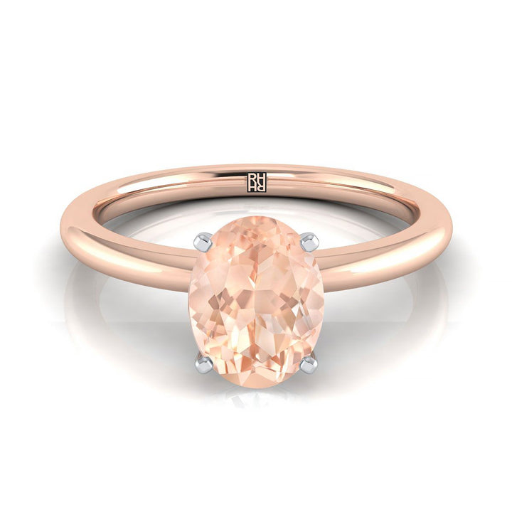 14k Rose Gold Engagement Ring With 8 X 6 Mm Oval Morganite Center Stone And Rounded Shank And 4 Prong Setting