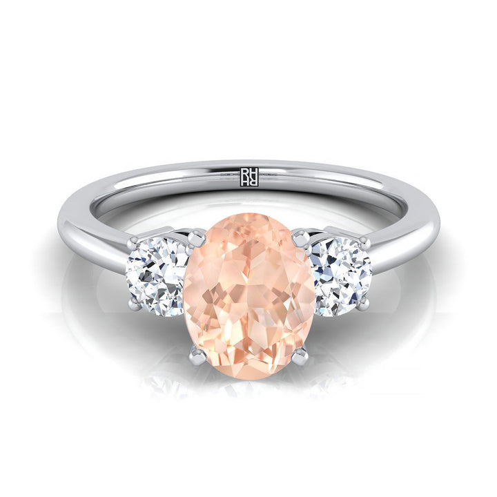 14K White Gold Oval Morganite Perfectly Matched Round Three Stone Diamond Engagement Ring -1/4ctw