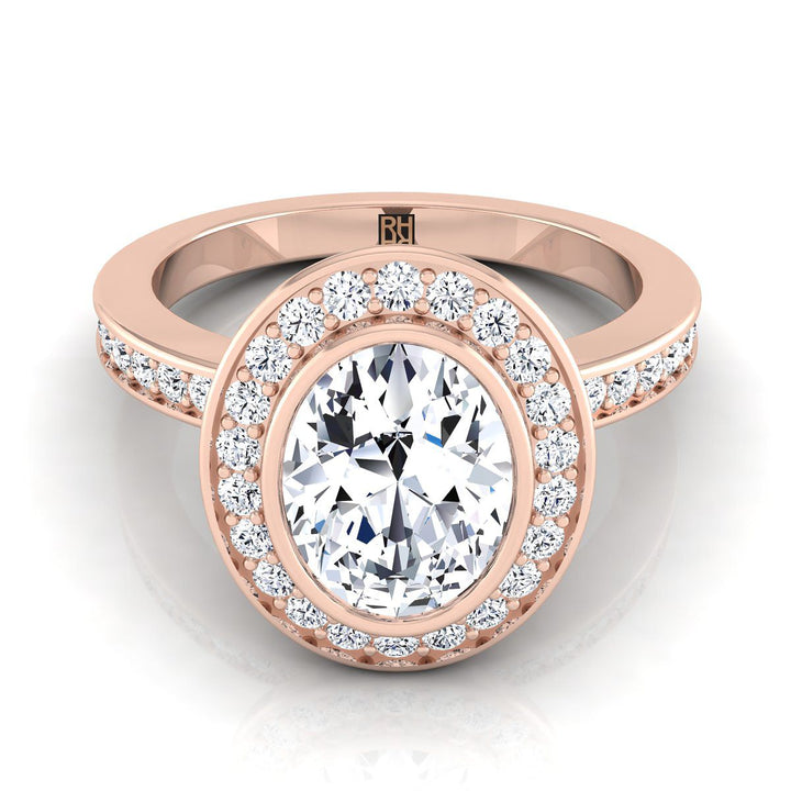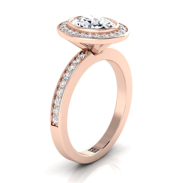 14K Rose Gold Oval Diamond Matching Halo and Channel Band Engagement Ring -3/8ctw