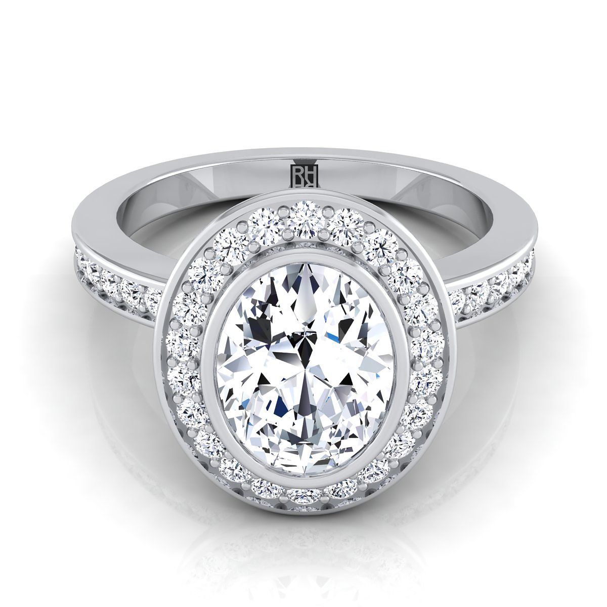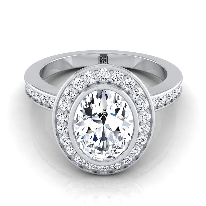 18K White Gold Oval Diamond Matching Halo and Channel Band Engagement Ring -3/8ctw