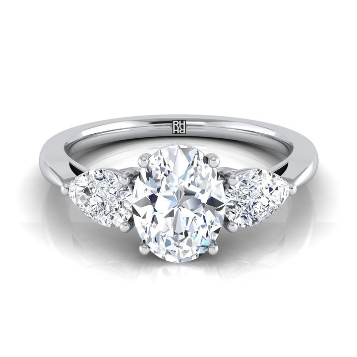 18K White Gold Oval Diamond Perfectly Matched Pear Shaped Three Diamond Engagement Ring -7/8ctw