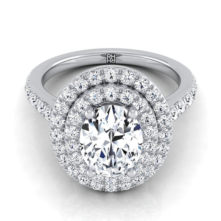 18K White Gold Oval Double Pave Halo with Linear Diamond Engagement Ring -7/8ctw