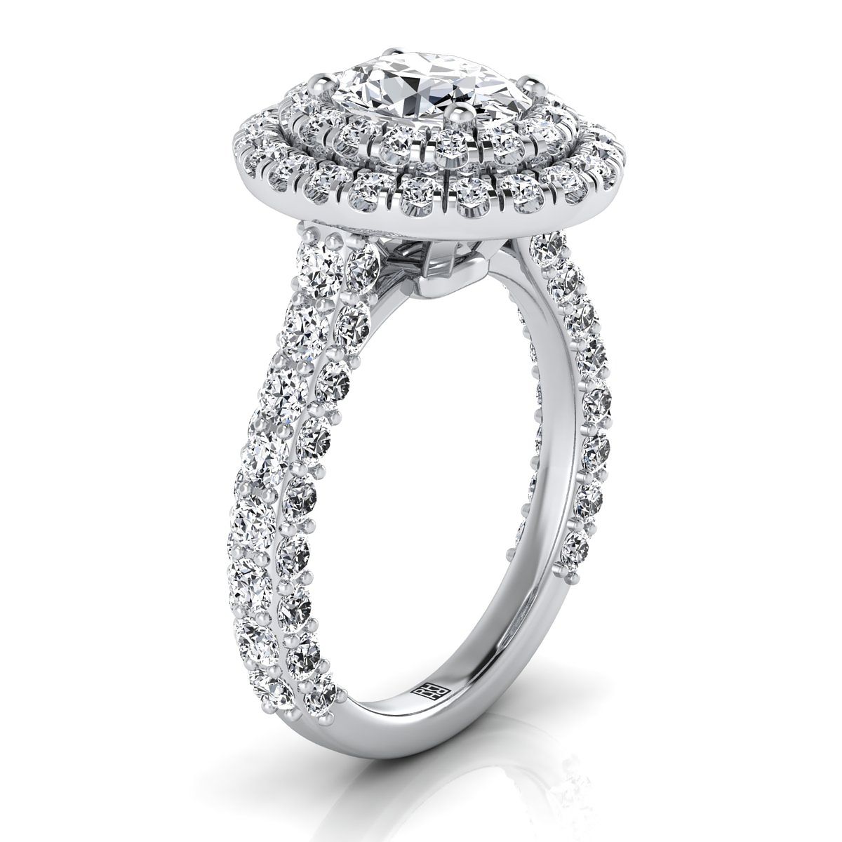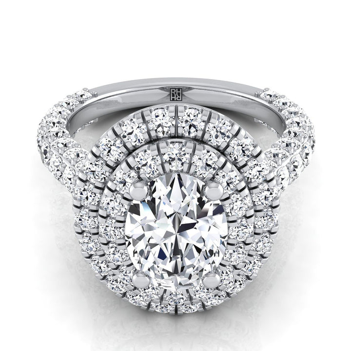 14K White Gold Oval Diamond Bold and Fancy Double Halo French Pave Engagement Ring -2ctw