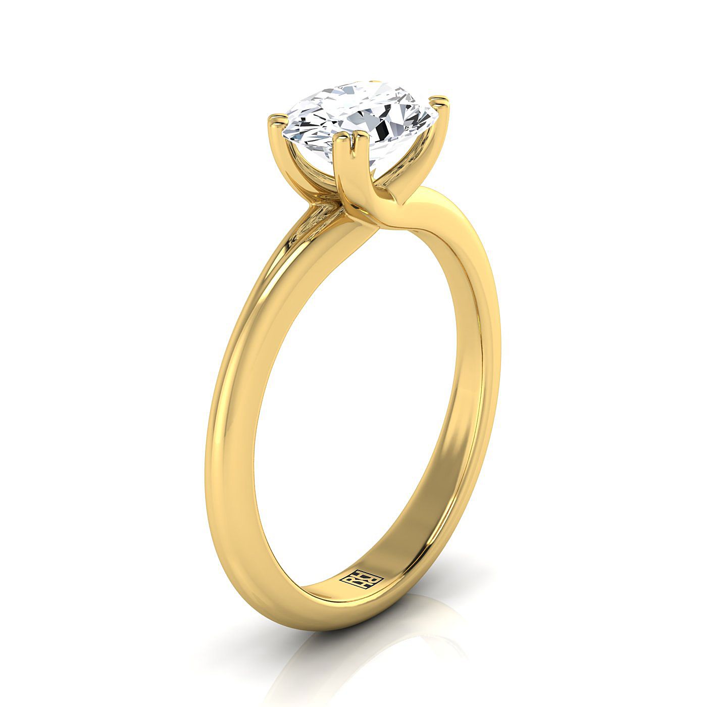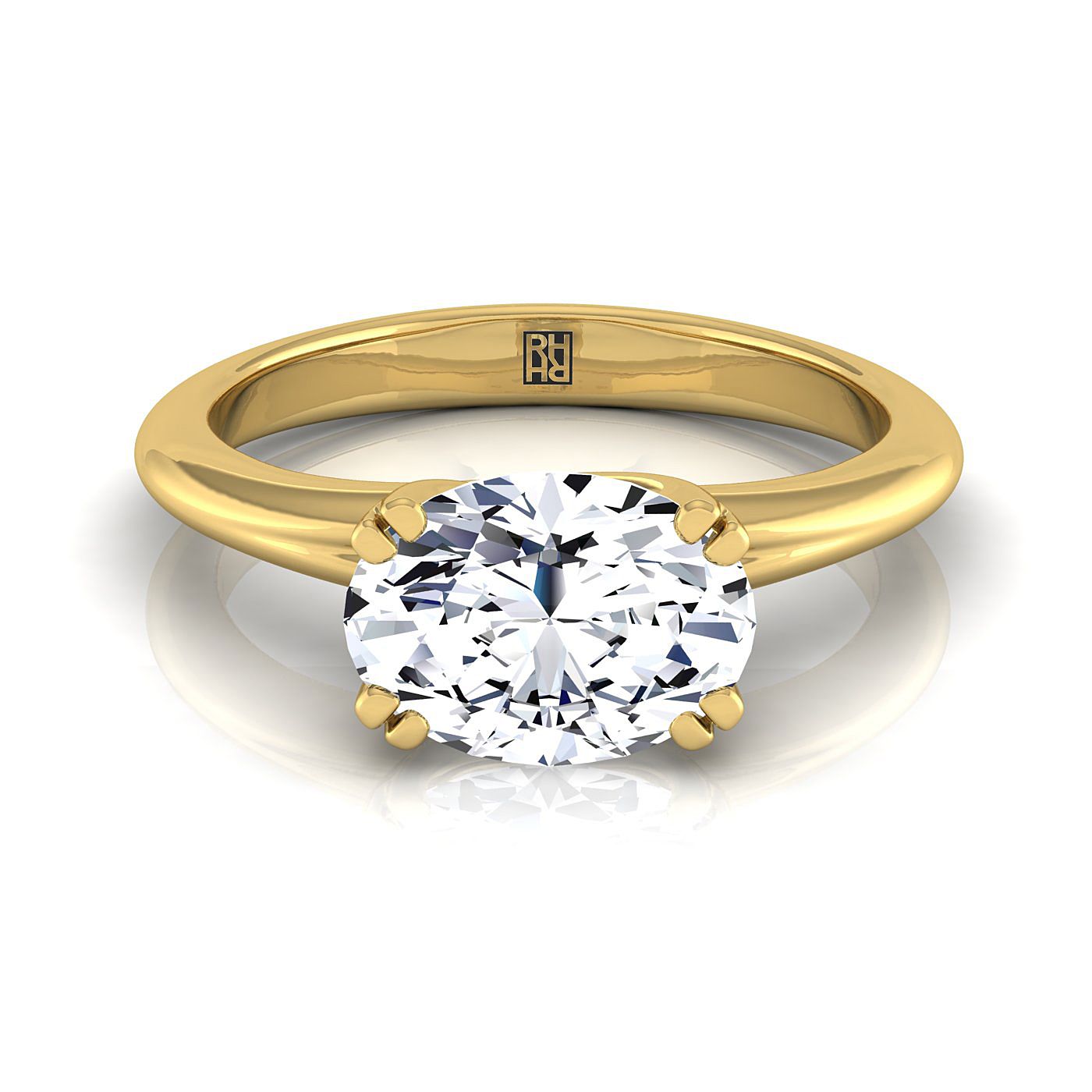 14K Yellow Gold Oval East West Eight Claw Comfort Fit Solitaire Engagement Ring