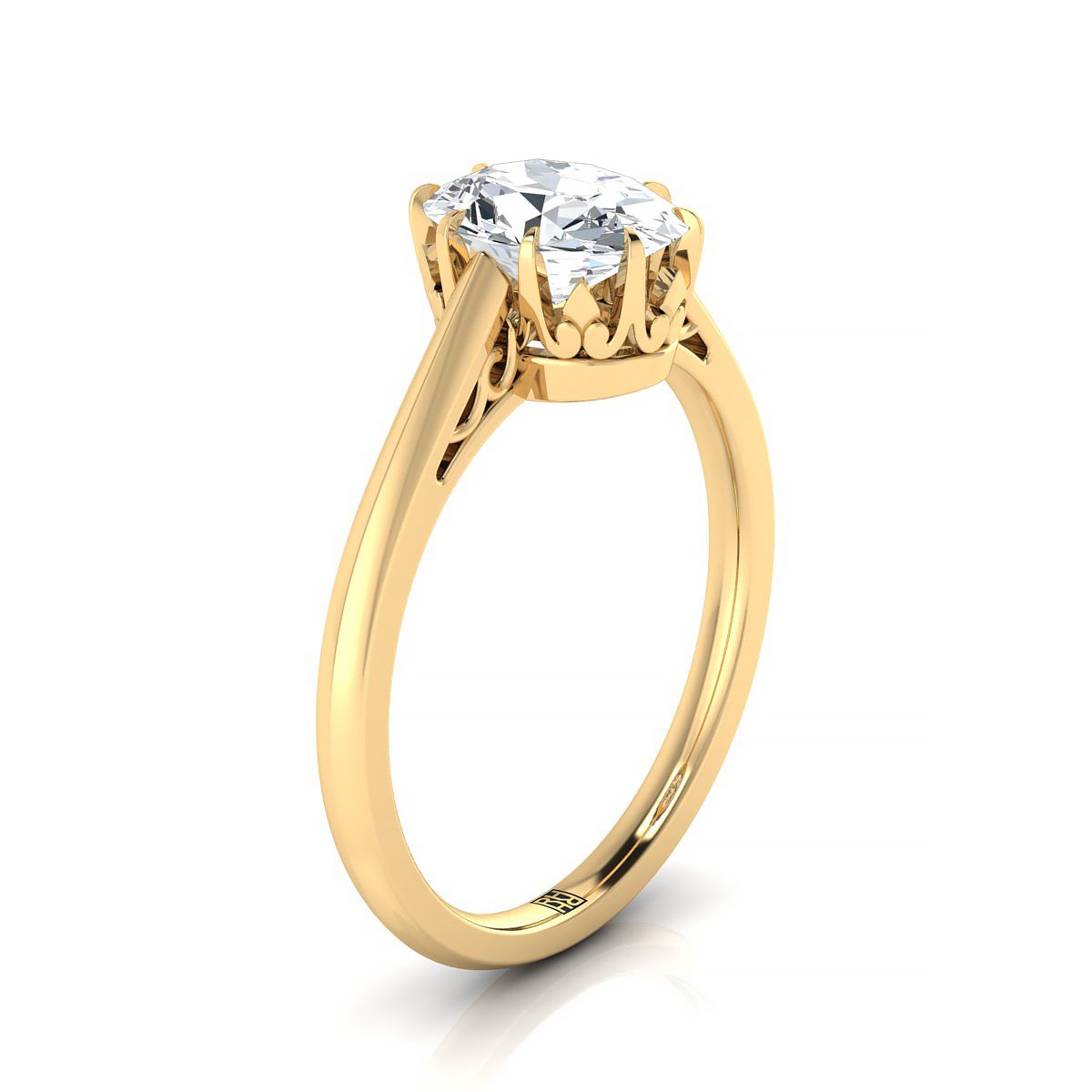 18K Yellow Gold Oval Antique Scroll Detail Solitaire Engagement Ring