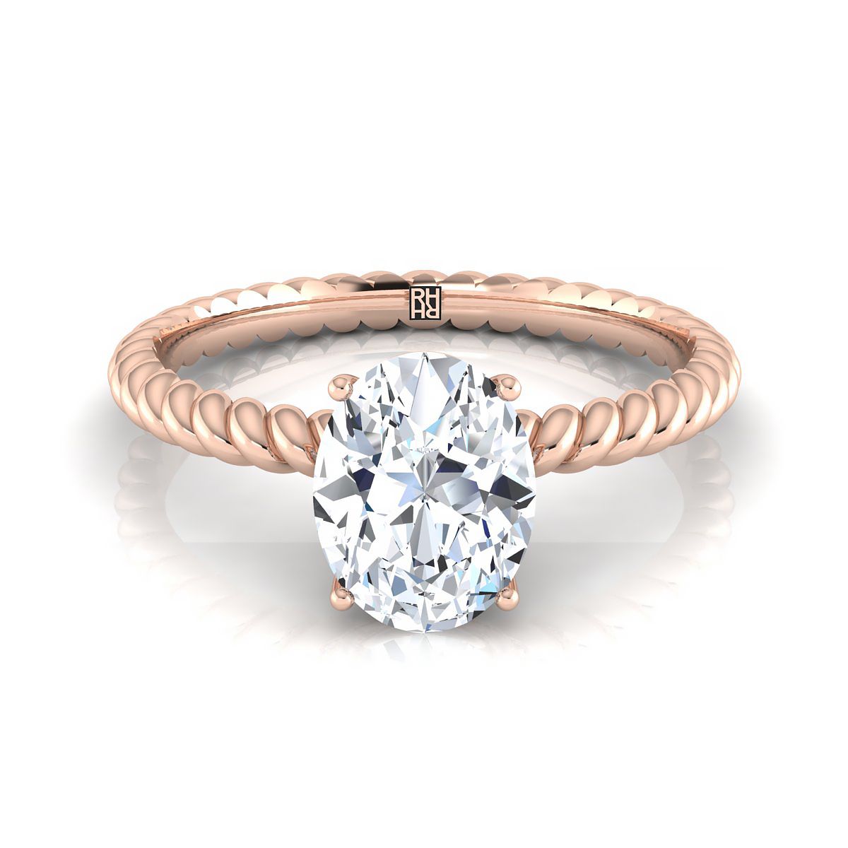 14K Rose Gold Oval Diamond Twisted Rope Solitaire With Surprise Stone Engagement Ring