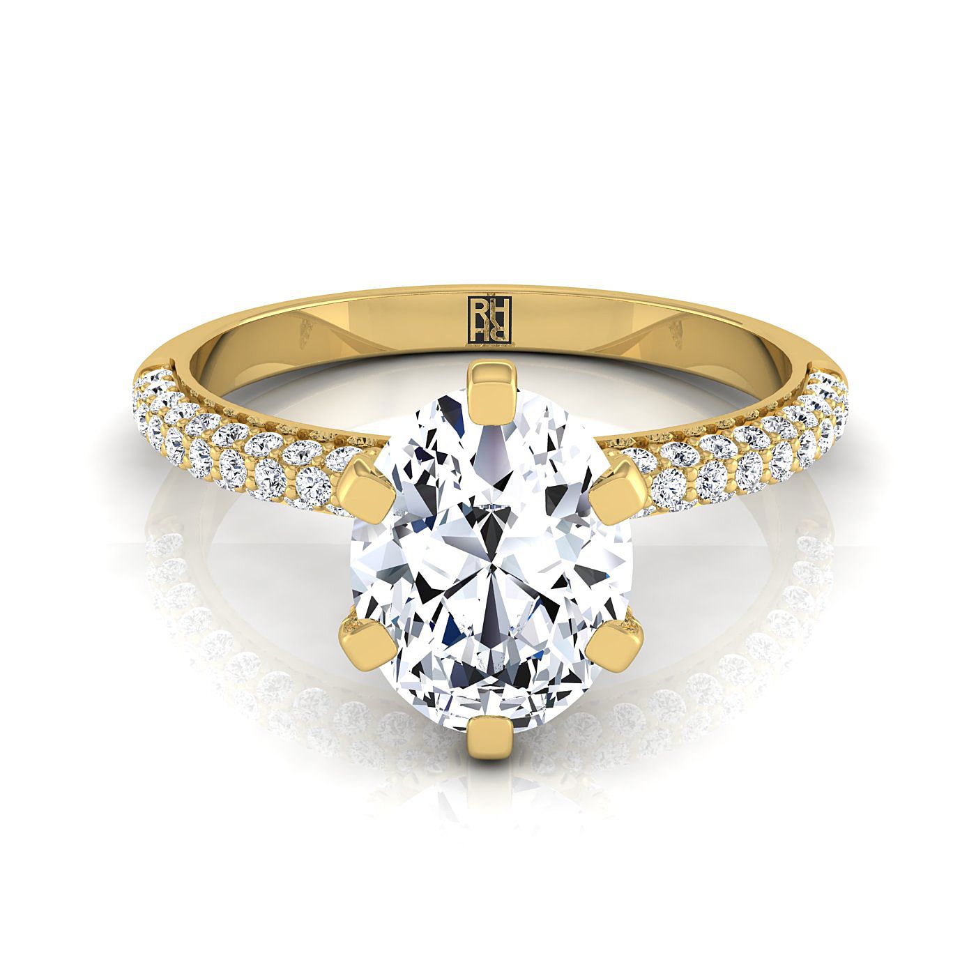 Exquisitely Handcrafted In 14k Yellow Gold, This Oval Shape Diamond Engagement Ring Showcases Brilliant Cut Diamonds (h-i/vs 0.45ctw) Beautifully Pave Set In This Classic Mounting