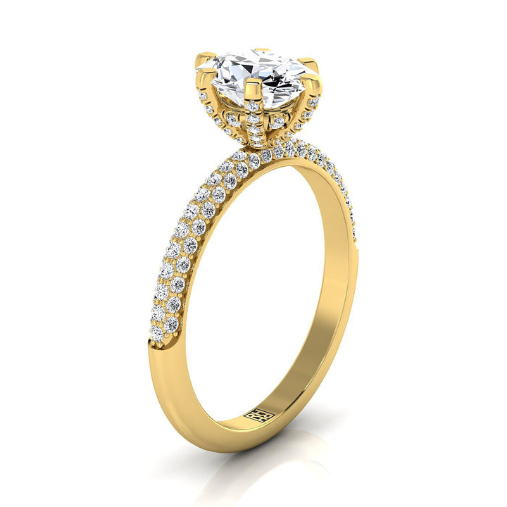 14K Yellow Gold Oval Diamond Three Row French Pave Simple Engagement Ring -1/3ctw