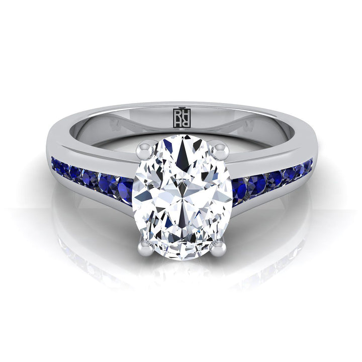 14K White Gold Oval Contemporary Tapered Blue Sapphire Channel Engagement Ring