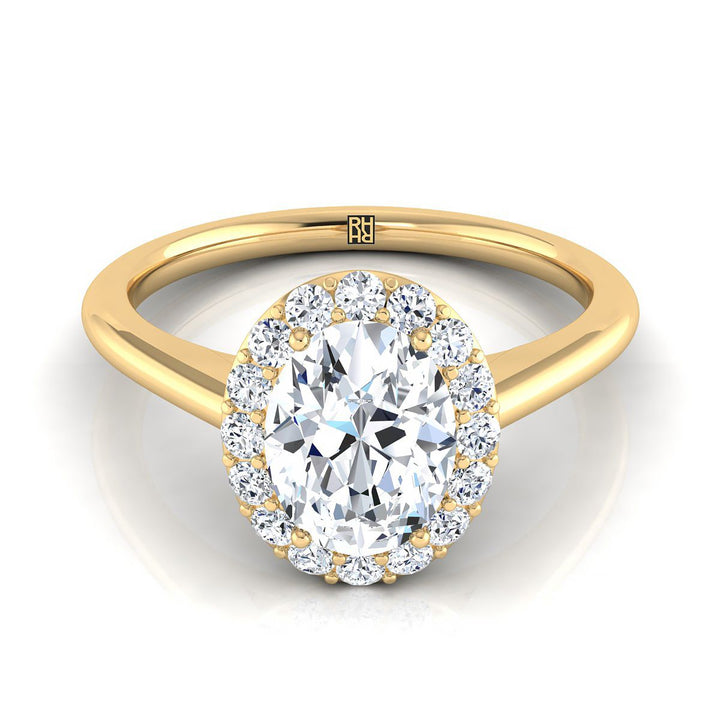 14K Yellow Gold Oval Diamond Shared Prong Halo Engagement Ring -1/5ctw