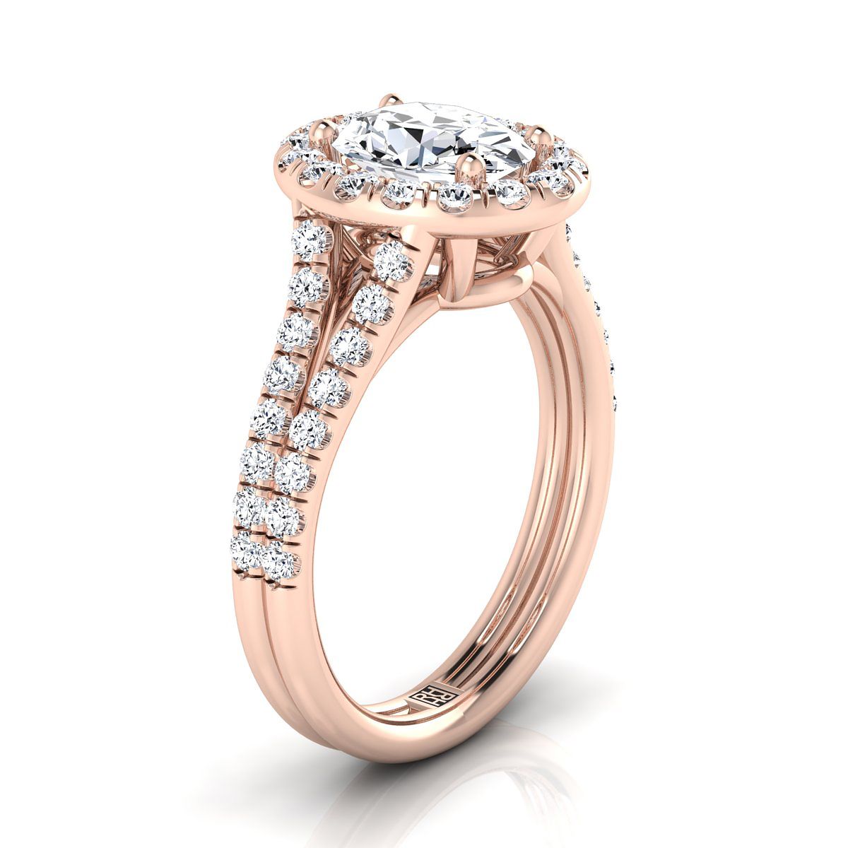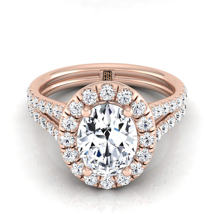 14K Rose Gold Oval Diamond French Pave Split Shank Halo Engagement Ring -5/8ctw