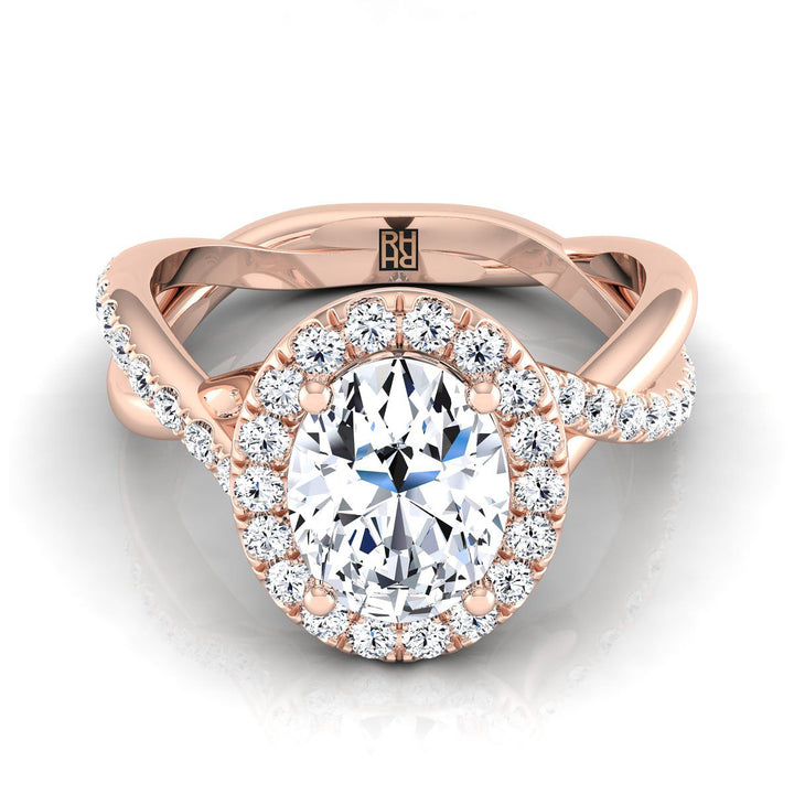 14K Rose Gold Oval Diamond Twisted Vine Halo Engagement Ring -1/2ctw