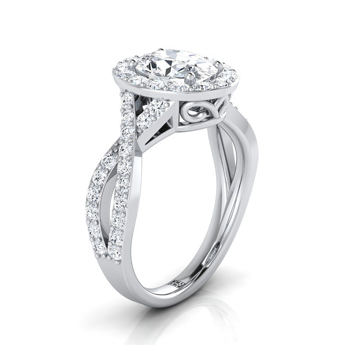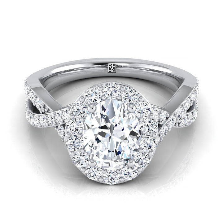 14K White Gold Oval Twisted Open Lattice Diamond Halo Engagement Ring -3/4ctw