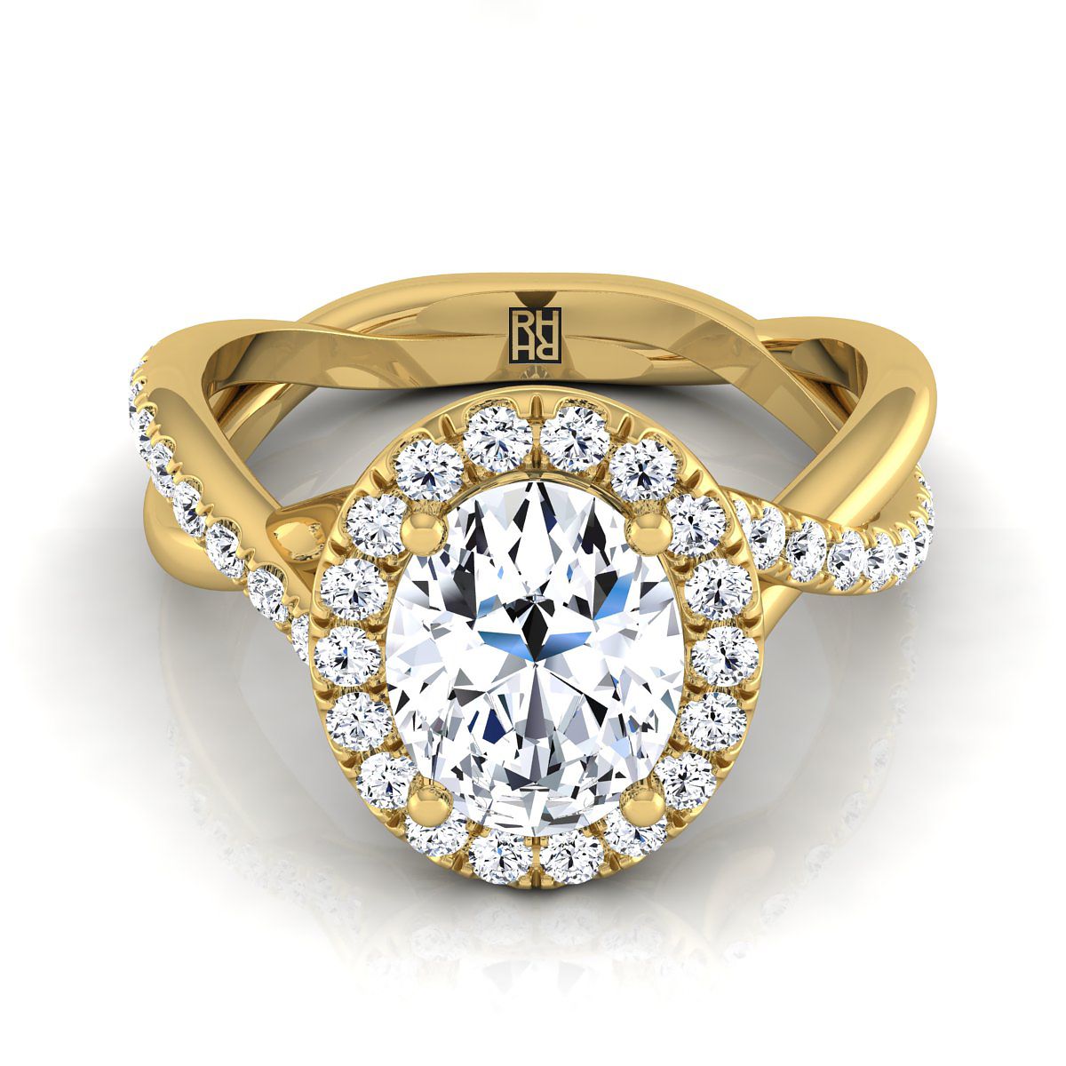 14K Yellow Gold Oval Diamond Twisted Vine Halo Engagement Ring -1/2ctw