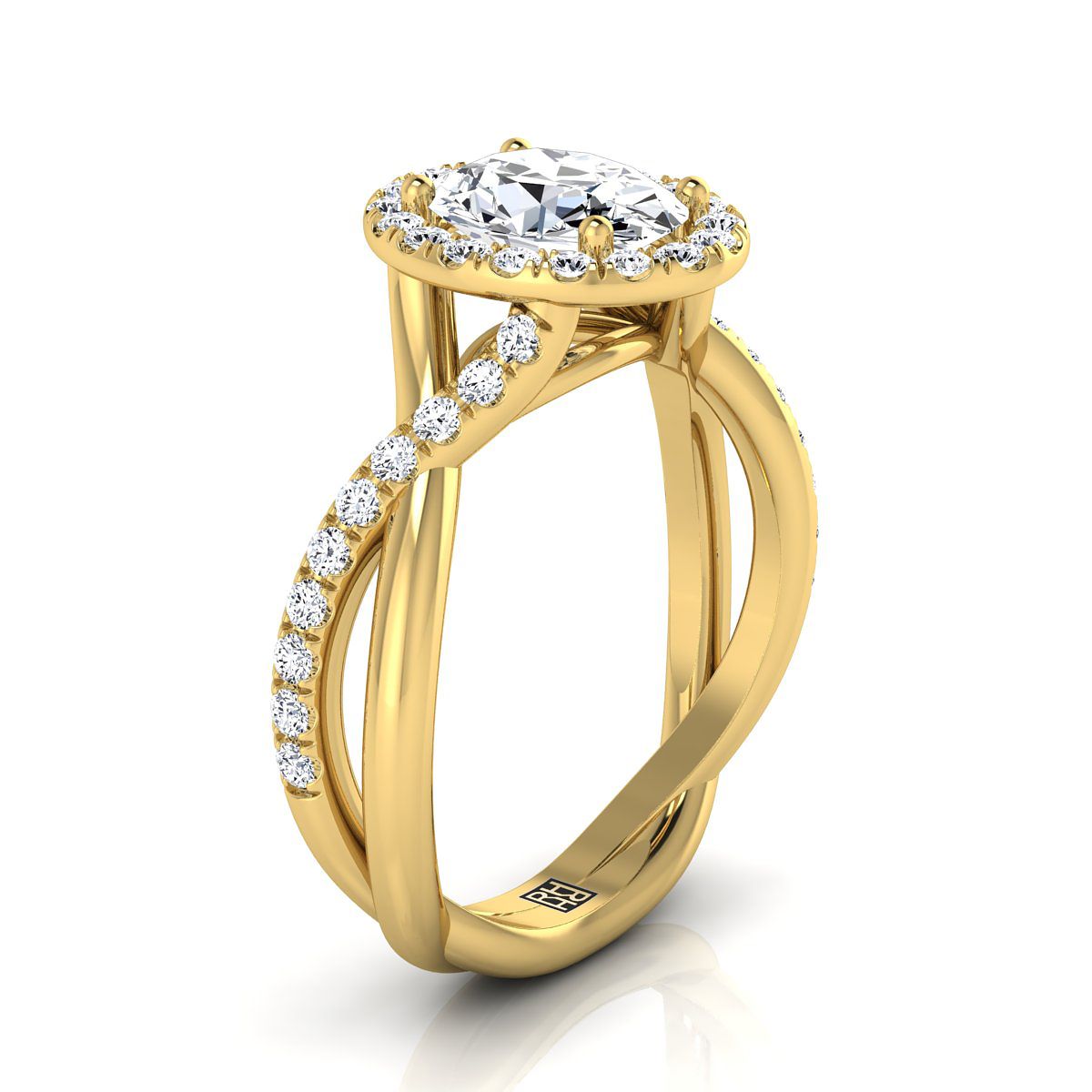 A Modern Statement Of Style, This Oval Halo Pave Engagement Ring With Infinity Shank Showcases Brilliant Cut Diamonds (h-i/vs 0.45ctw) Mounted In A 14k Yellow Gold Setting.
