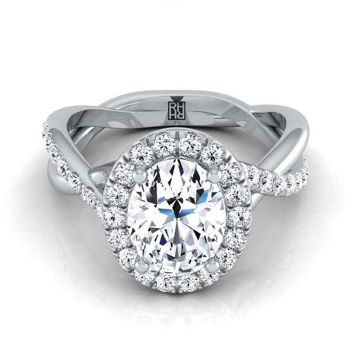 18K White Gold Oval Diamond Twisted Vine Halo Engagement Ring -1/2ctw