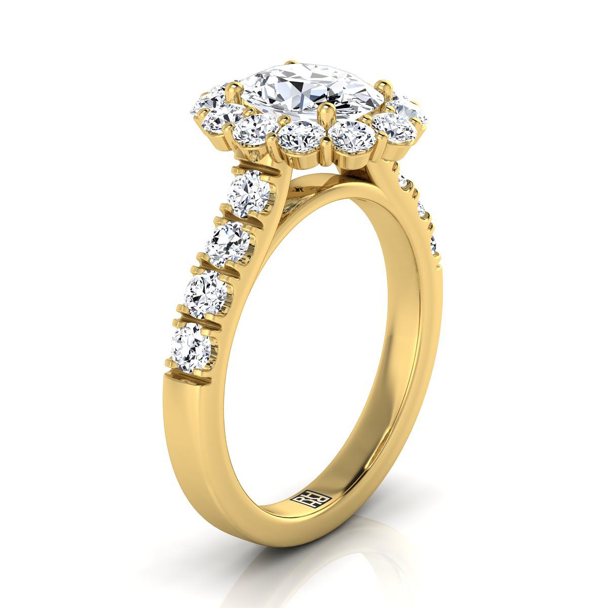 14K Yellow Gold Oval Diamond Luxe Style French Pave Halo Engagement Ring -1-1/10ctw