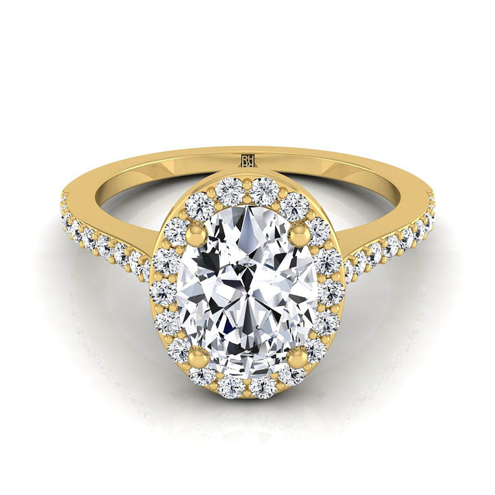 14K Yellow Gold Oval Classic French Pave Diamond Halo and Linear Engagement Ring -1/3ctw