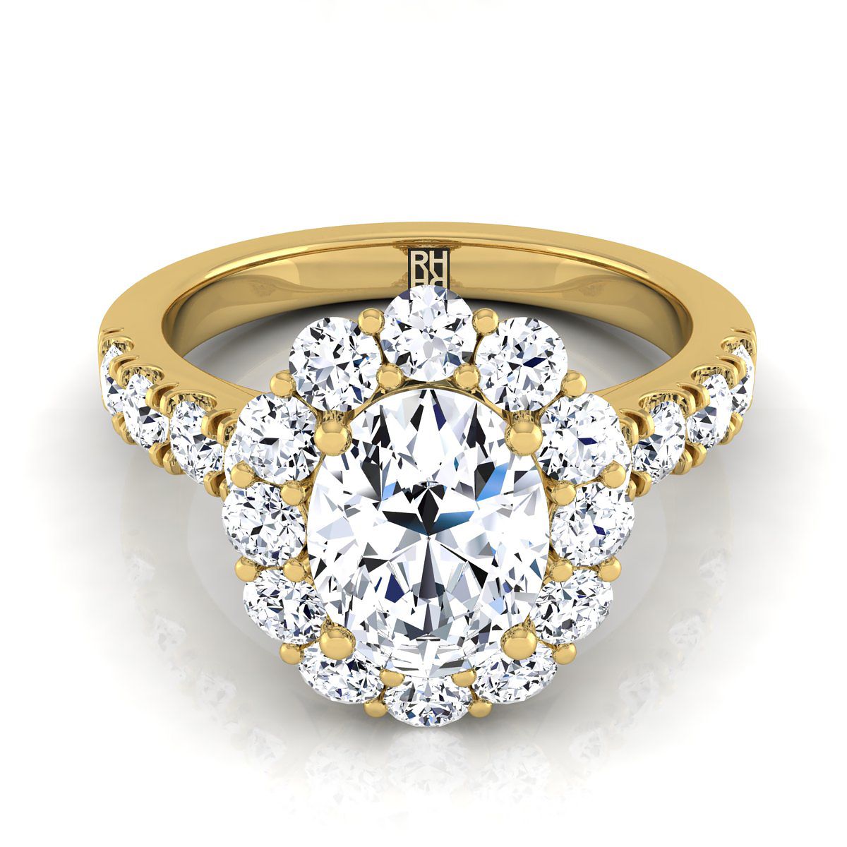 18K Yellow Gold Oval Diamond Luxe Style French Pave Halo Engagement Ring -1-1/10ctw